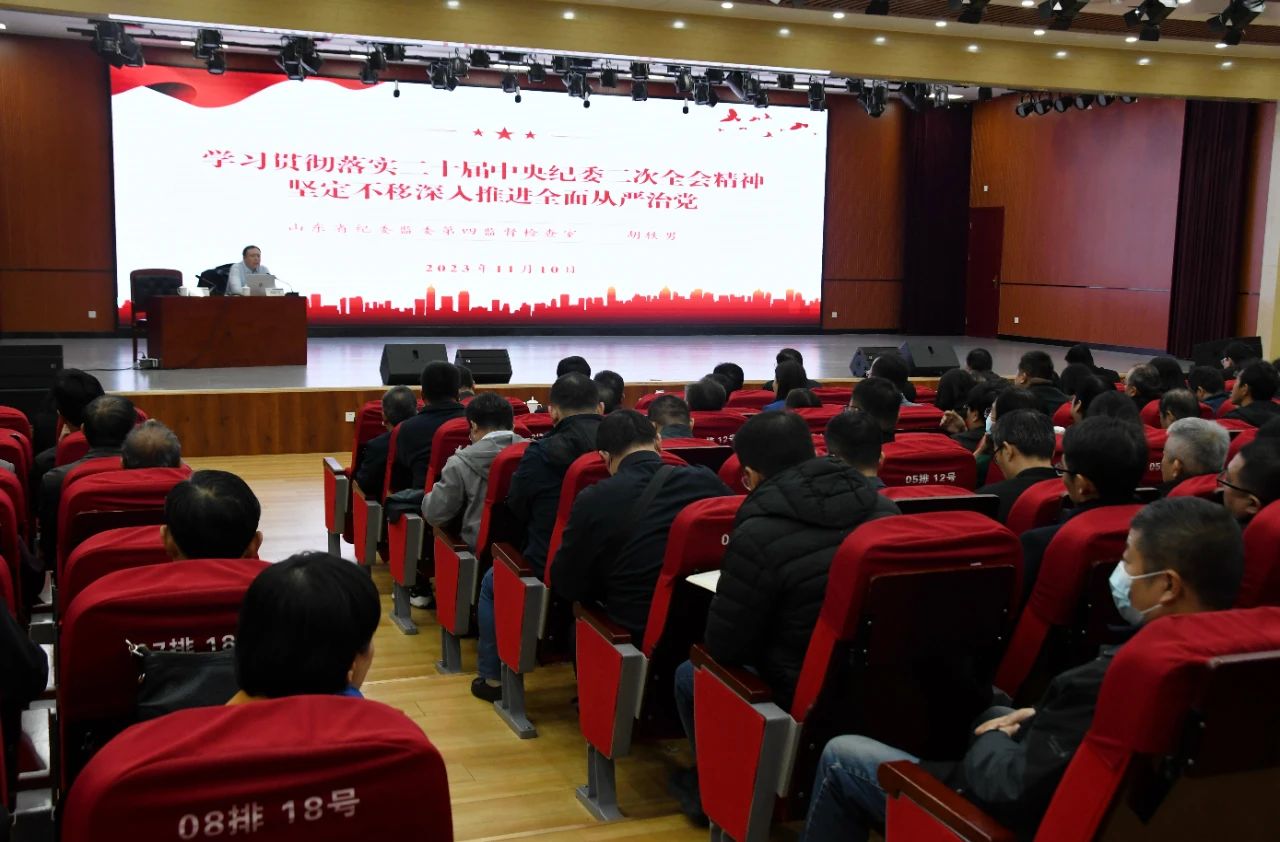 11月10日上午,学校举行党风廉政教育报告会,邀请山东省纪委监委第四监督检查室副主任、一级调研员胡轶男作专题辅导报告。学校党委领导班子成员出席报告会,报告会由校党委常委、纪委书记、监察专员高秀鹏主持。学校全体中层干部、纪检监察干部参加报告会。