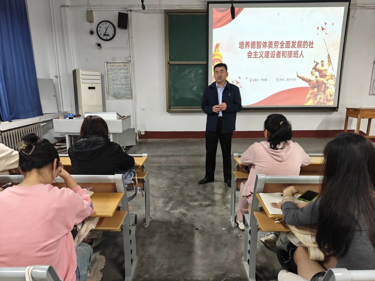 培训会伊始,李永新以当前社会环境下青少年面临的诸多问题为切入点,点明了教育的根本任务与方向就是培养德智体美劳全面发展的社会主义建设者和接班人,并向学生们提出四点要求:一是坚定理想信念;二是加强品德修养;三是增长知识见识;四是增强综合素质。他强调作为社会主义建设者与接班人,要时刻以党员的标准要求自己,发挥模范带头作用,积极主动地承担责任,为国家的未来贡献青春力量。学生们认真聆听,深入探讨,会后纷纷表示今后会不断磨砺自己的品德修养,将学习成果切实转化为投身中国式现代化建设的思想自觉和行动自觉,为实现中华民族伟大复兴的中国梦贡献青春力量。