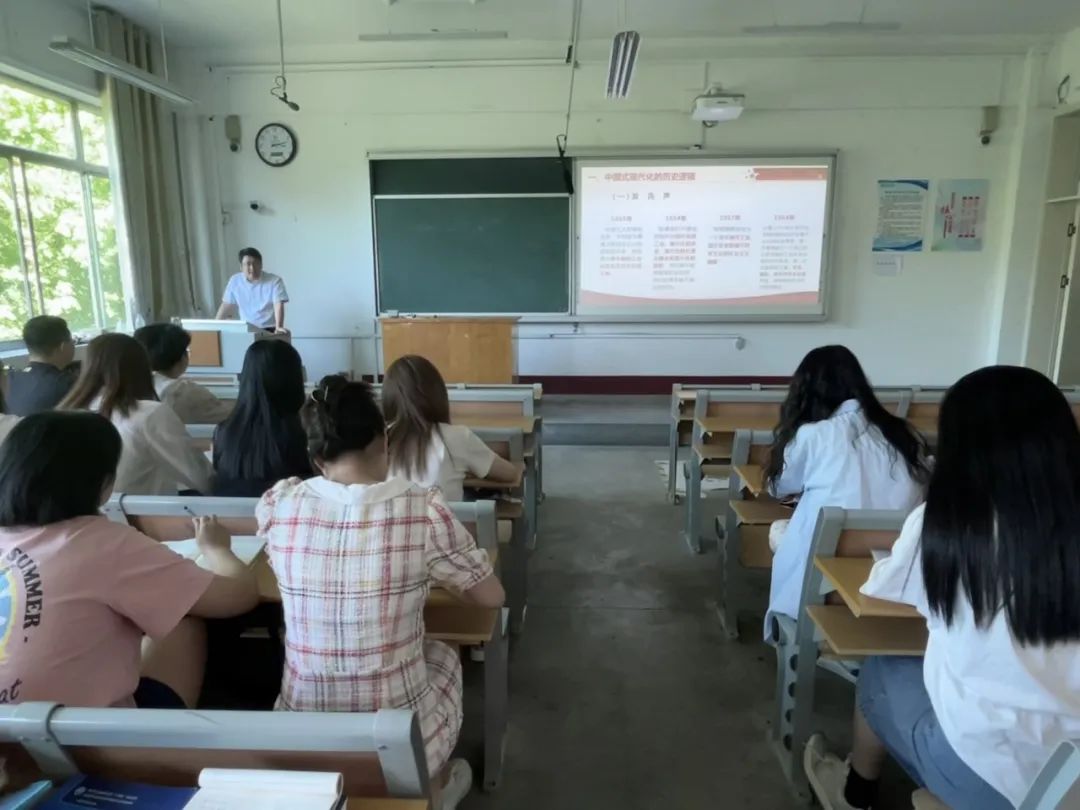 本次党课主要以“以中国式现代化推进中华民族伟大复兴”为主题,深入学习贯彻党的二十大精神。李军老师以中国式现代化的历史逻辑为本节课的切入点,讲到自1945年到1964年,我国的工业、农业、国防和科学技术不断进入现代化。李军老师通过讲述自己大学时期生活的事例,生动诠释了我国中国式现代化为人民生活带来的改变。为了加深学生们对中国式现代化的深入了解,李军老师继续从五个方面向学生们讲解中国式现代化得鲜明特色。由于授课时间有限,最后李军老师简略从四个方面讲述“中国式现代化”。李军老师不单单从理论层面为学生们讲解,在授课过程中,他联系我国国情与个人经历,将本次课的内容以通俗易懂的方式传授给学生们,学生们纷纷感到意犹未尽,认为此次党课不仅传授党的理论知识,更是毕业后的人生指引。