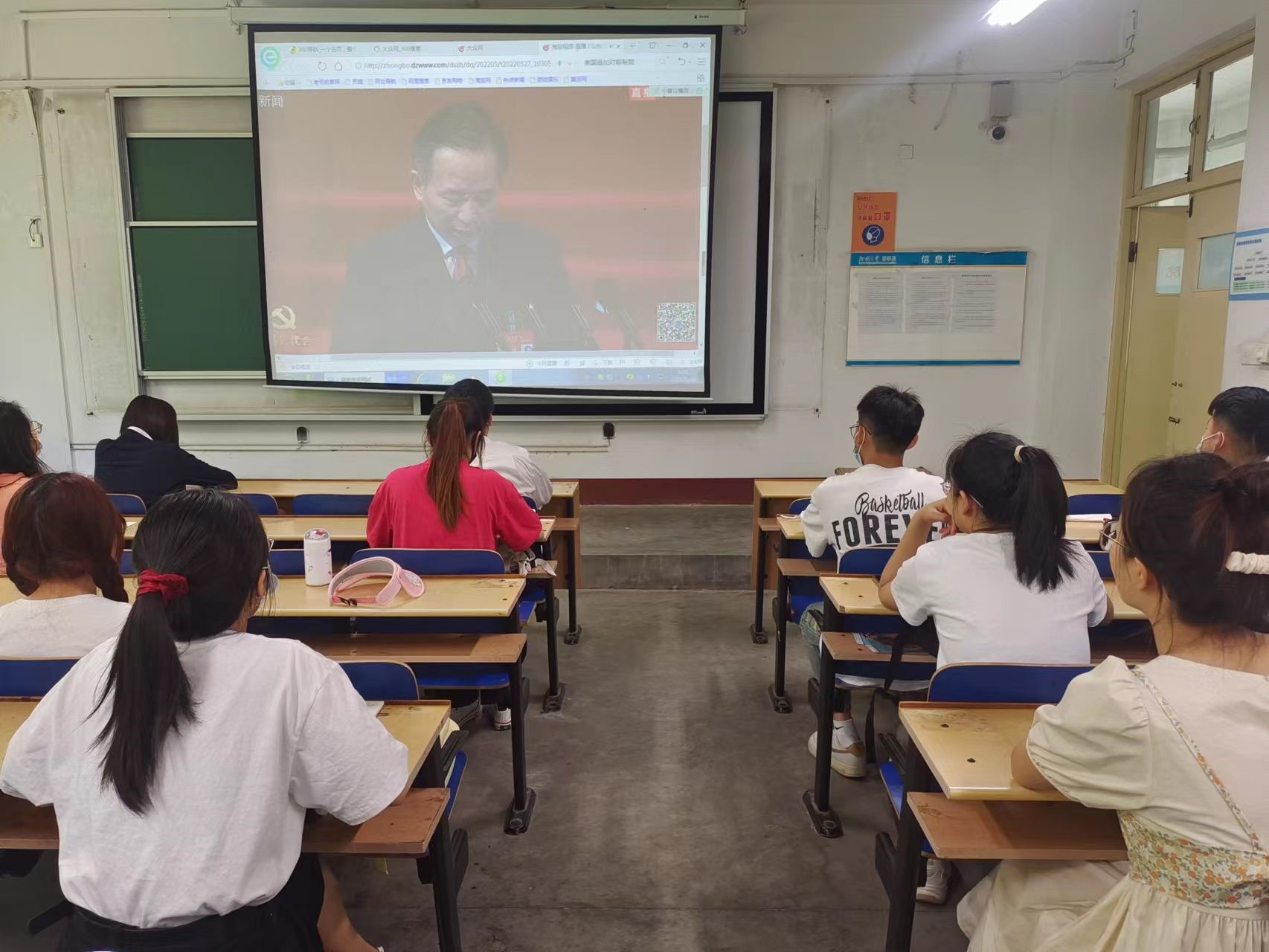 5月28日,药学院于无码影片 东校区2#101教室组织党员干部群众集中收听收看中国共产党山东省第十二次代表大会开幕式,药学院党委书记程波、院长冀芦沙、学生党支部全体党员、部分学生代表观看了开幕式。