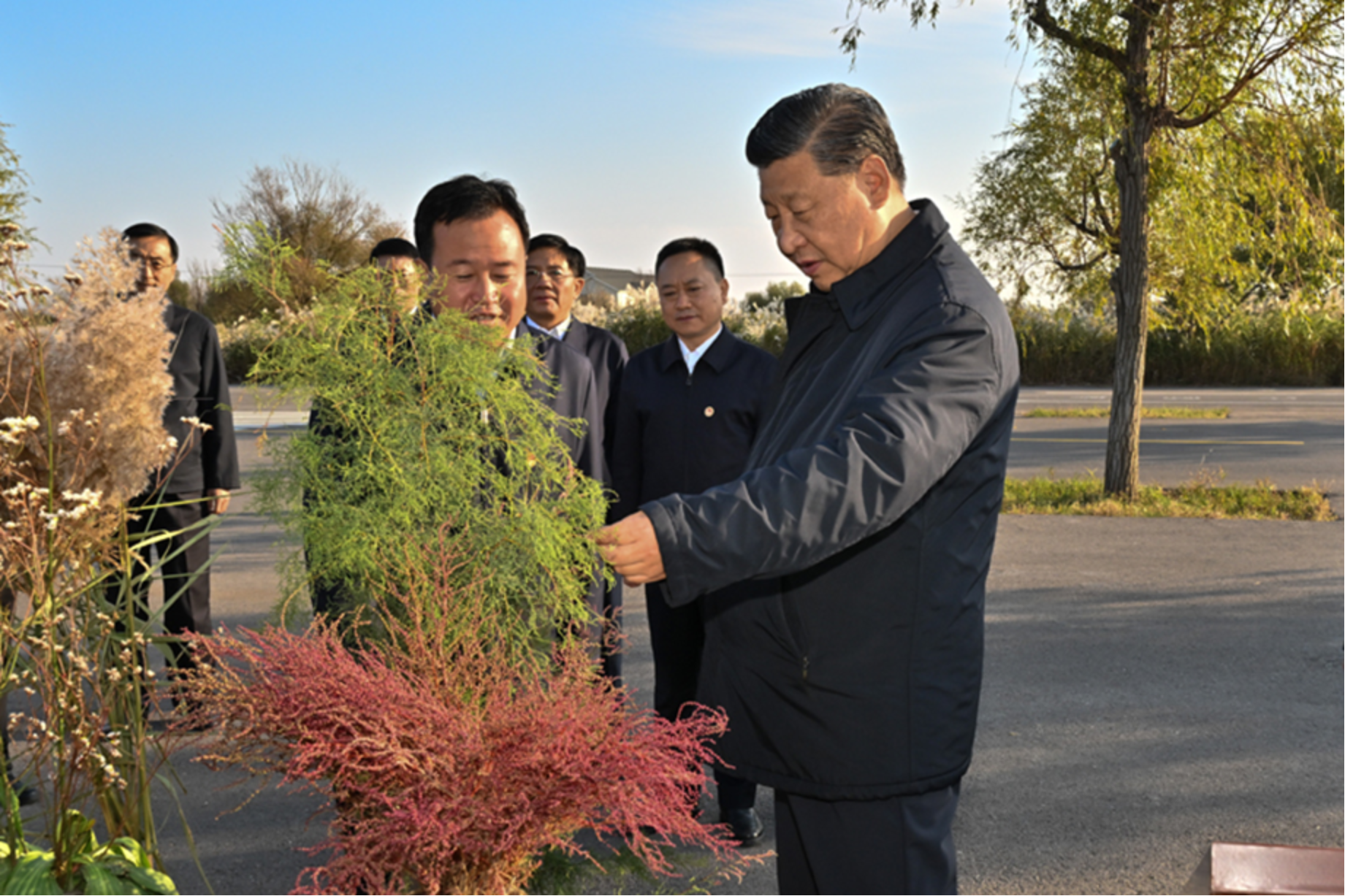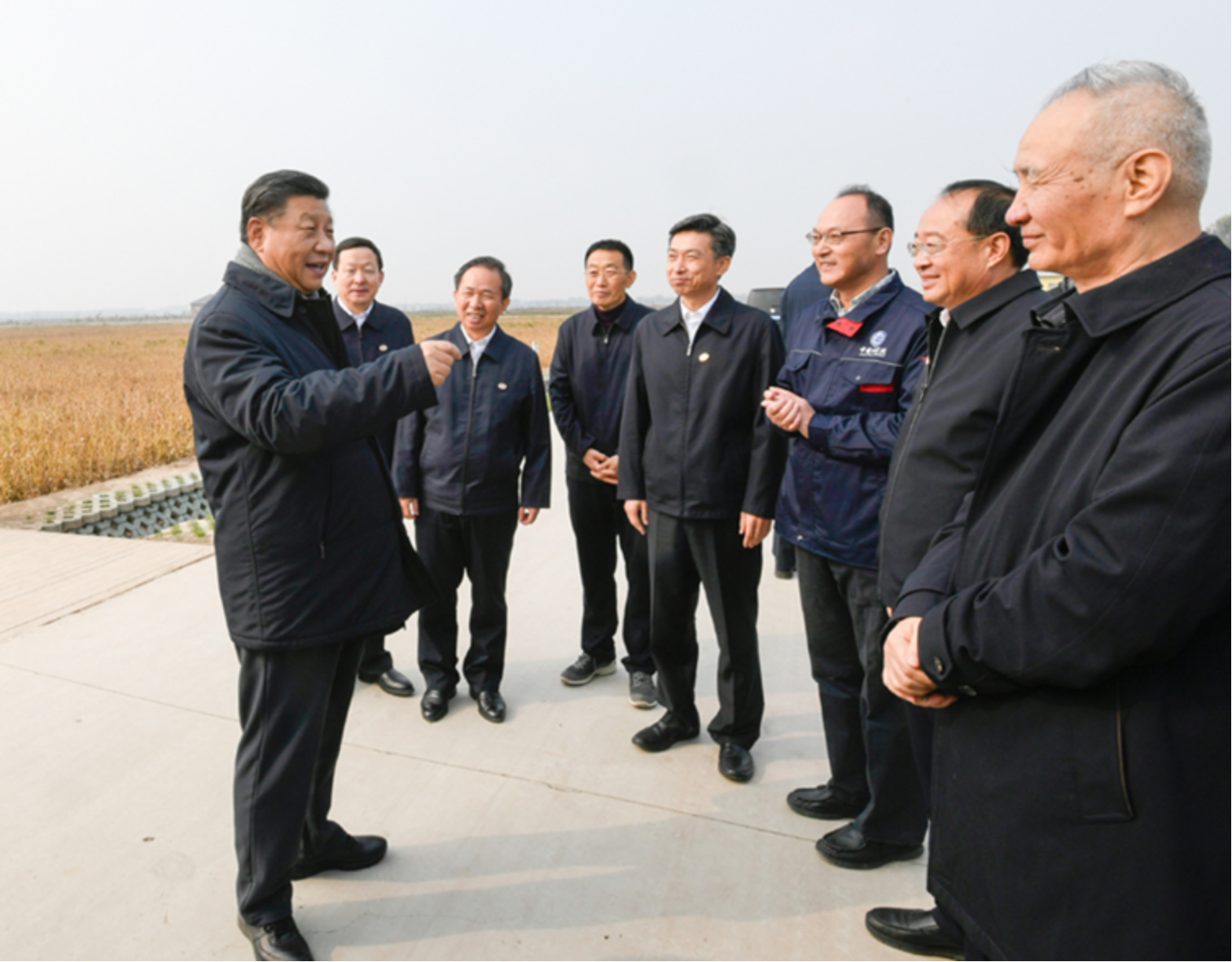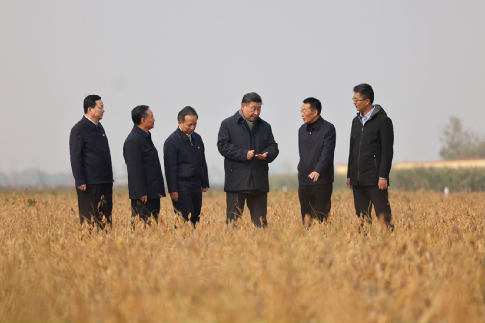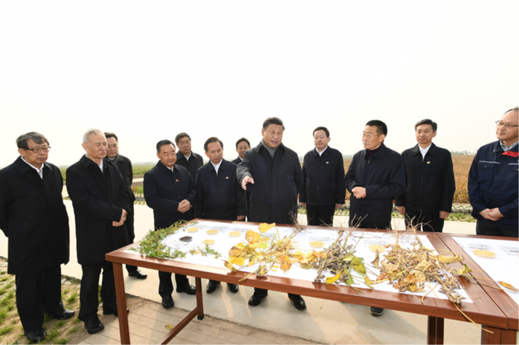 习近平21日上午在东营市黄河三角洲农业高新技术产业示范区考察时,走进田间察看大豆长势