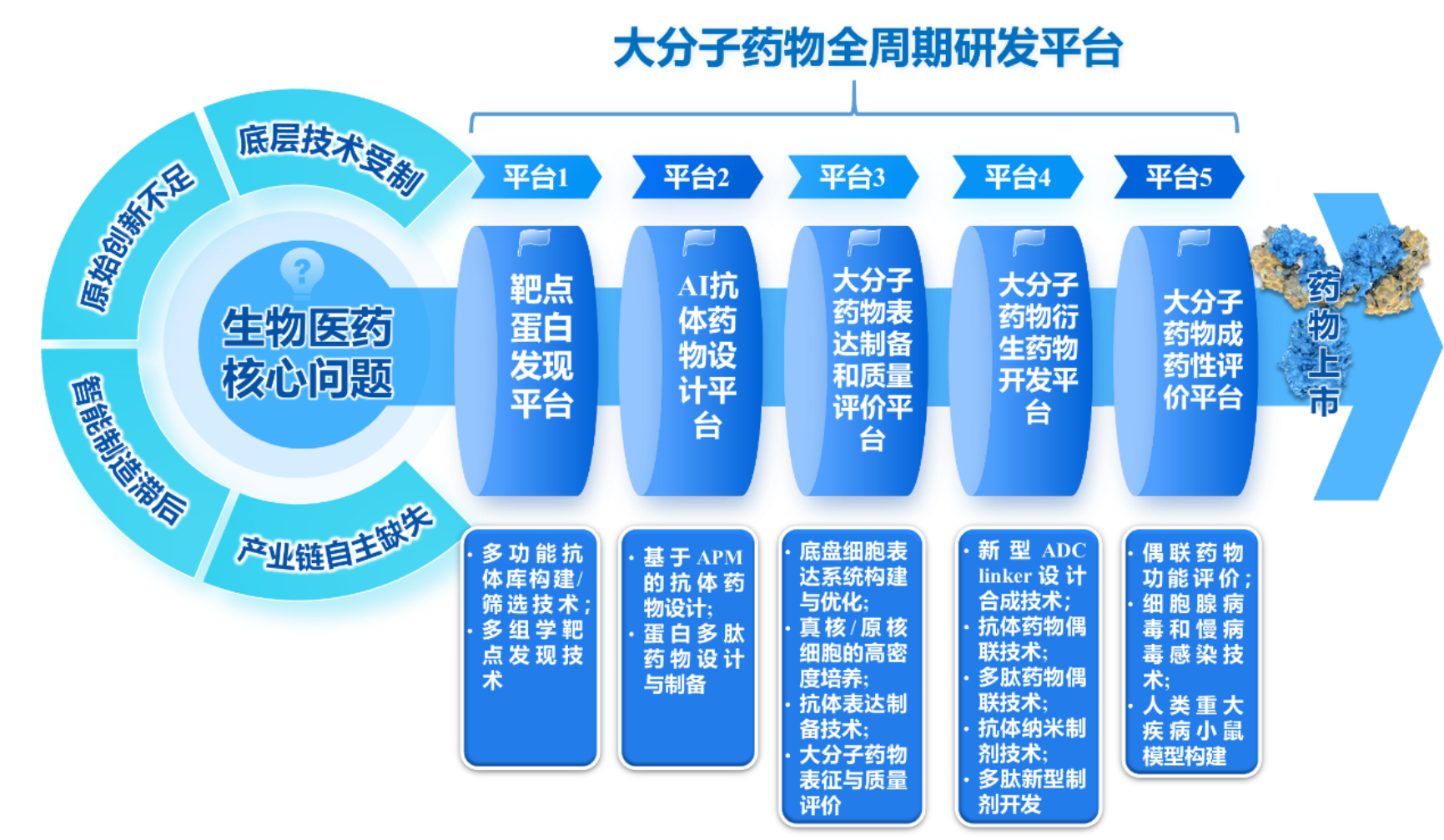 细胞株构建改良:通过合成生物学策略构建和改良抗体表达的中国仓鼠卵巢(CHO)细胞或其他宿主细胞。细胞规模化培养:采用代谢工程和发酵工程技术实现宿主细胞的高密度培养和抗体的高效稳定表达。分离纯化:采用连续化集约化分离纯化系统,结合在线分析检测技术,实现抗体纯化过程精确控制,保障抗体质量。