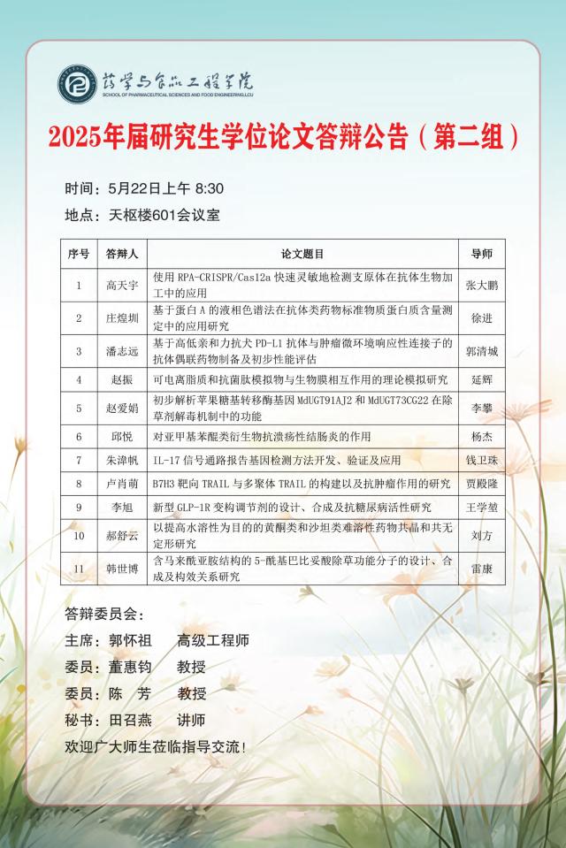 2025届研究生学位论文答辩公告