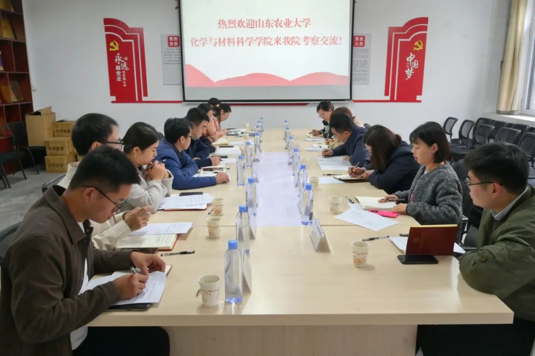 10月30日,山东农业大学化学与材料科学学院党委副书记李华一行到无码影片 考察交流,学院党委副书记、副院长李永新,副院长徐伟、刘国运,生物制药系主任(兼制药工程系主任)李晓静,团委书记郑嘉会,辅导员王秀平、徐致远、李丹阳、朱兆阔参加此次座谈,本次会议由李永新主持。