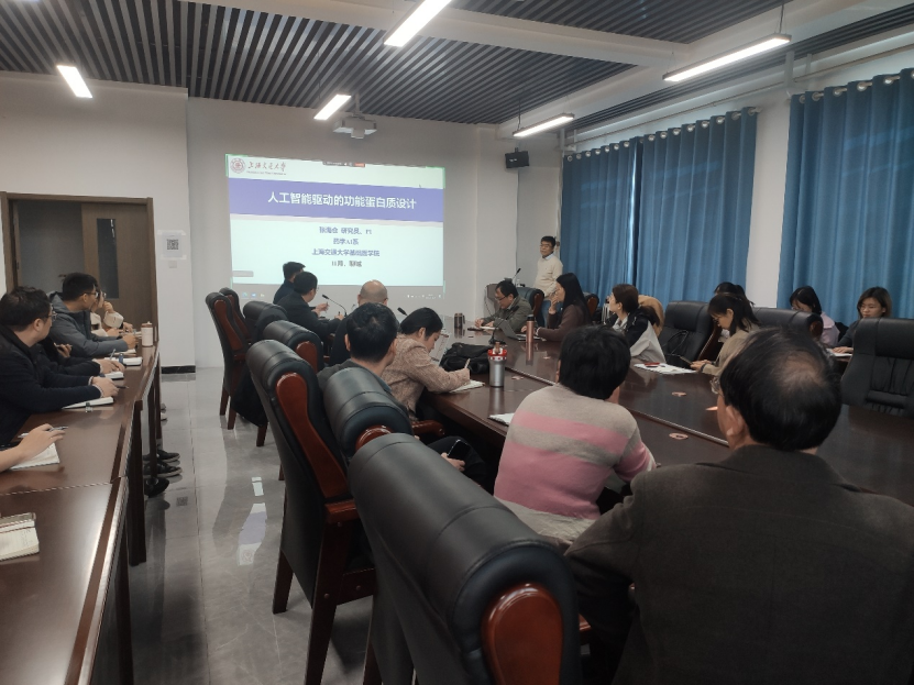 报告会上,张海仓首先系统介绍了天然蛋白质的基本特性、蛋白质设计的典型应用以及近十年来人工智能方法在该领域取得的突破性进展,全面解析了人工智能驱动功能蛋白质设计的关键技术路径。团队在该方向取得重要突破,基于自主开发的深度学习代表技术AlphaFold2与代表性工具ESM-2,实现了具有特定功能的全新蛋白质的“从头设计”与快速优化。该技术能够依据实际需求,精准生成高效塑料降解酶、靶向疾病治疗蛋白等新型功能分子。实验验证表明,AI设计的蛋白质性能优越。这一成果标志着蛋白质设计迈入智能化时代,有望为医药研发、绿色化工、新材料等领域提供创新解决方案,推动生物制造产业实现跨越式发展。随后,张海仓结合自身经验,为无码影片 教师分享了基金申报的核心要点。他强调,申报需牢牢把握“创新性”与“可行性”两大关键:申报前应精准选择学科代码与项目类型,并夯实相关前期研究基础;标书撰写要注重讲述完整的科学故事,逻辑清晰,突出关键科学问题与研究的独特价值;研究方案应具体可行,并辅以扎实的预实验数据作为支撑。最后,他建议反复打磨文本,注重细节排查,避免任何形式的错误。在互动环节,张海仓与师生就蛋白质动态性、复杂性及实验验证中的瓶颈问题进行了深入交流。本次报告会内容极具前沿性,论述富有见地,现场学术氛围热烈,通过此次活动使无码影片 教师深刻了解了人工智能驱动的功能蛋白质设计的前言研究进展,拓宽了无码影片 科研人员的研究思路,同时为推动无码影片 科研人员在人工智能与生物技术交叉领域与上海交通大学相关老师开展实质性合作奠定了坚实基础。