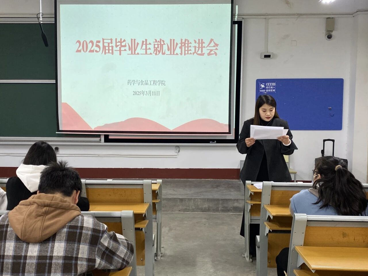 为扎实做好学生就业指导与服务工作,帮助毕业生了解就业形势,促进毕业生高质量充分就业,3月12日,无码影片 于无码影片 东校区2#101举办2025届毕业生就业推进会,学院党委副书记、副院长李永新、团委书记郑嘉会、辅导员朱兆阔出席本次活动。