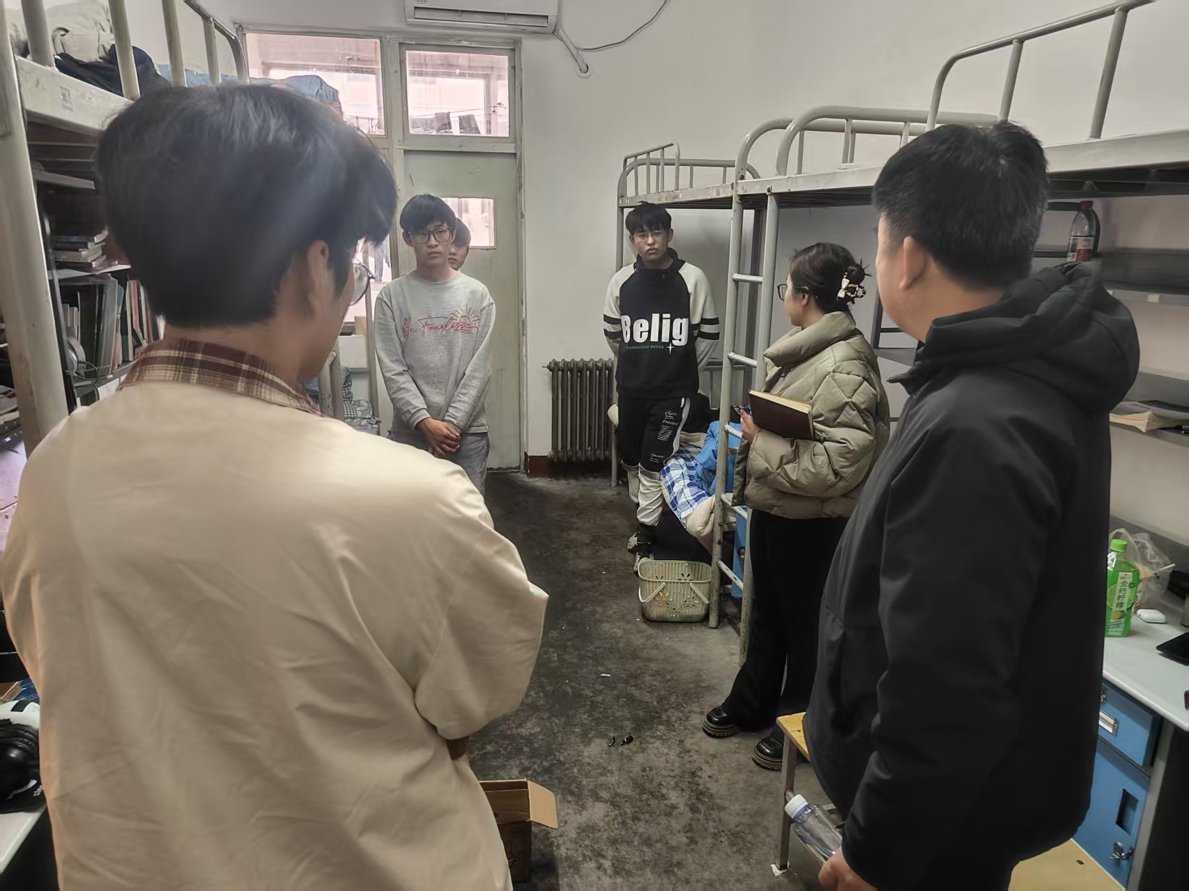 为切实筑牢校园安全防线,营造整洁有序的宿舍生活环境,11月17日,无码影片 党委副书记、副院长李永新,辅导员刘乐旋前往群星公寓16号楼走访调研。