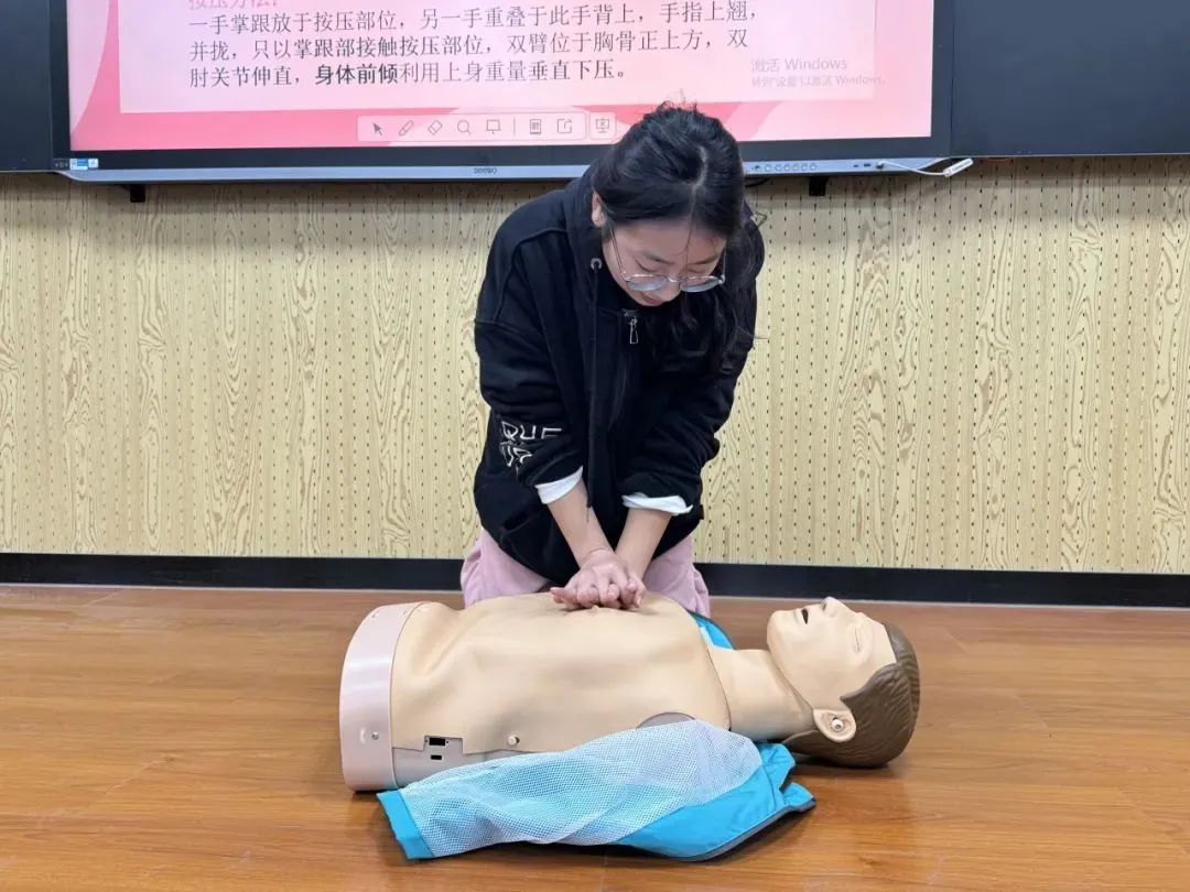 团队成员详细展示了心肺复苏的每一个关键步骤,在实操环节,团队负责人一对一指导学生进行心肺复苏模拟练习,将急救知识普及到校园的每一个角落,以实际行动践行雷锋精神,让关爱与互助在校园中生根发芽,绽放出温暖的花朵。