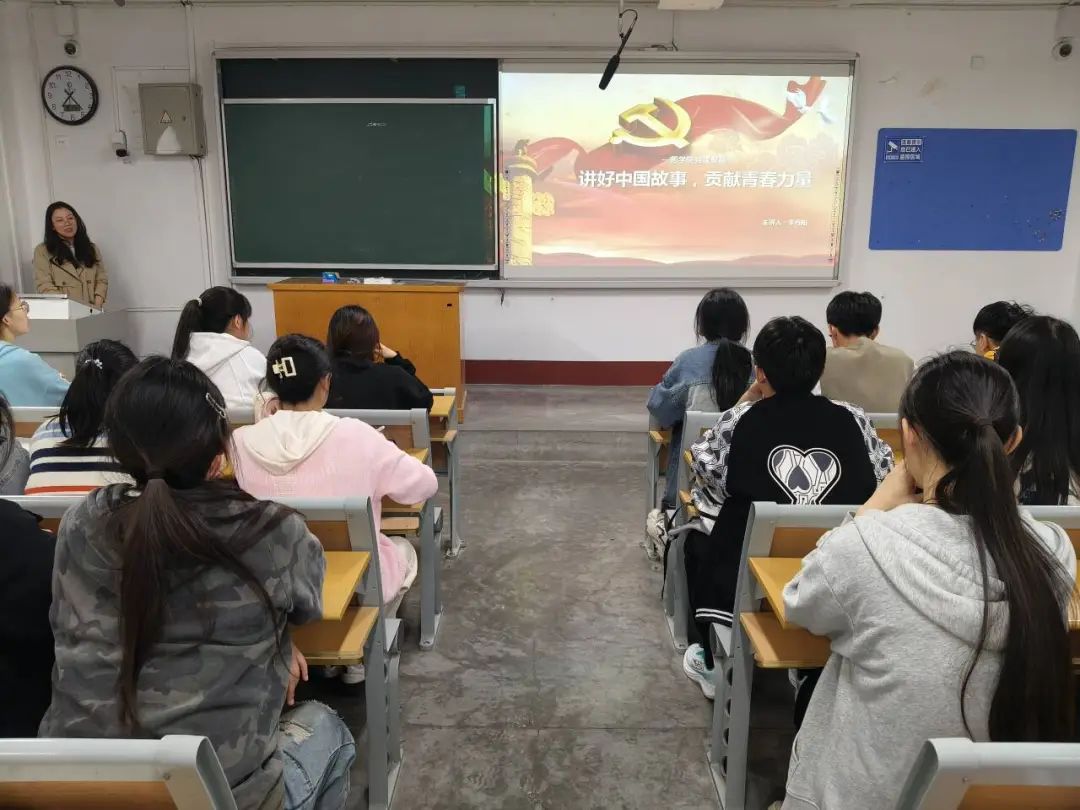 本次会议围绕“讲好中国故事,传播好中国声音”展开,主要包括“为什么要讲好中国故事”,“讲好什么样的中国故事”,“青年党员应该怎么做”三个方面。李丹阳以习近平总书记指出的“文化自信是一个国家、一个民族发展中最基本、最深沉、最持久的力量”为切入点,点明国家形象是自塑和他塑相博弈的结果,强调讲好中国故事,可以满足人民的自塑需求及自信需求,激发学生的文化自信与民族自信。随后,她从六个角度深入浅出地阐明了中国故事是沟通中国与世界的重要桥梁这一观点。她希望每位青年学子必须要在学深悟透的辉煌党史中,学习先进党员的先进精神事迹,厚植爱党爱国情怀。李丹阳就“青年党员应该如何做”这一话题,围绕着“守岛英雄”的王继才,“勇攀科创高峰”的嫦娥团队等事迹展开讲述,告诉学生们应努力成长为有理想、敢担当、能吃苦、肯奋斗的新时代好青年,鼓励学生要将自己的理想与国家的命运紧密相连,勇于承担起时代赋予的责任和使命。