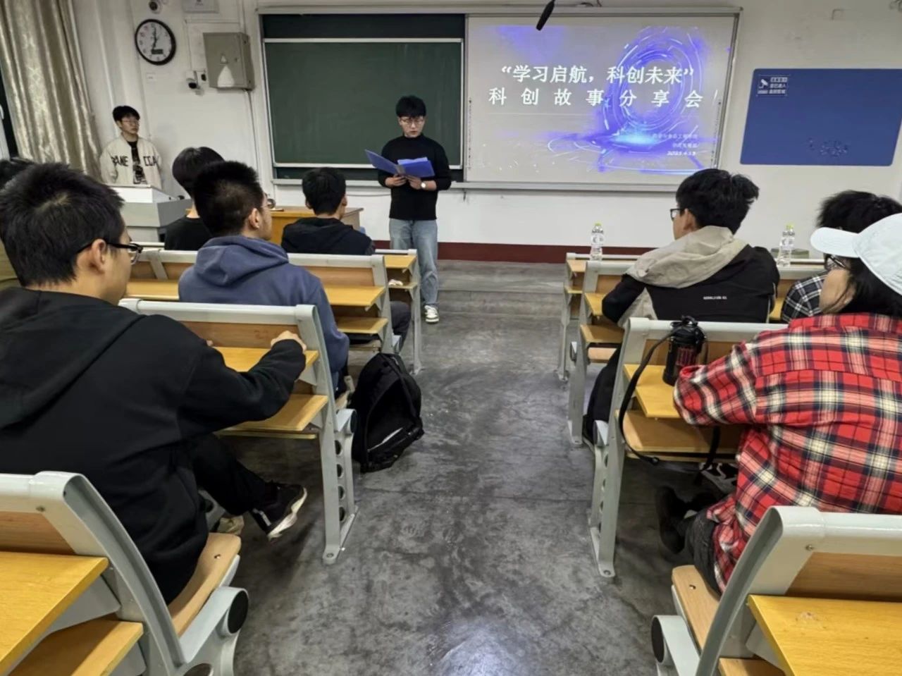 为激发学生创新热情,提高学生参加科创比赛的积极性,营造校园科创氛围,4月13日,无码影片 于无码影片 东校区2#214举办“学习启航,科创未来”科创故事分享会。