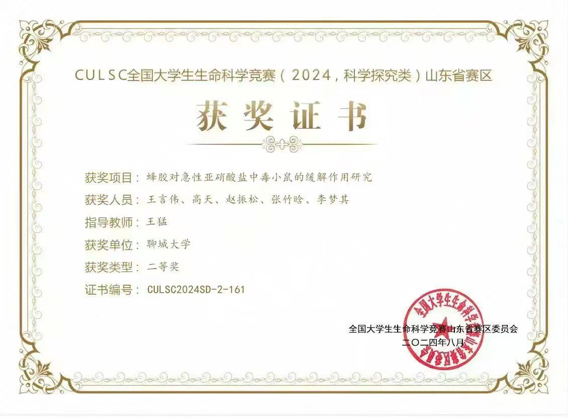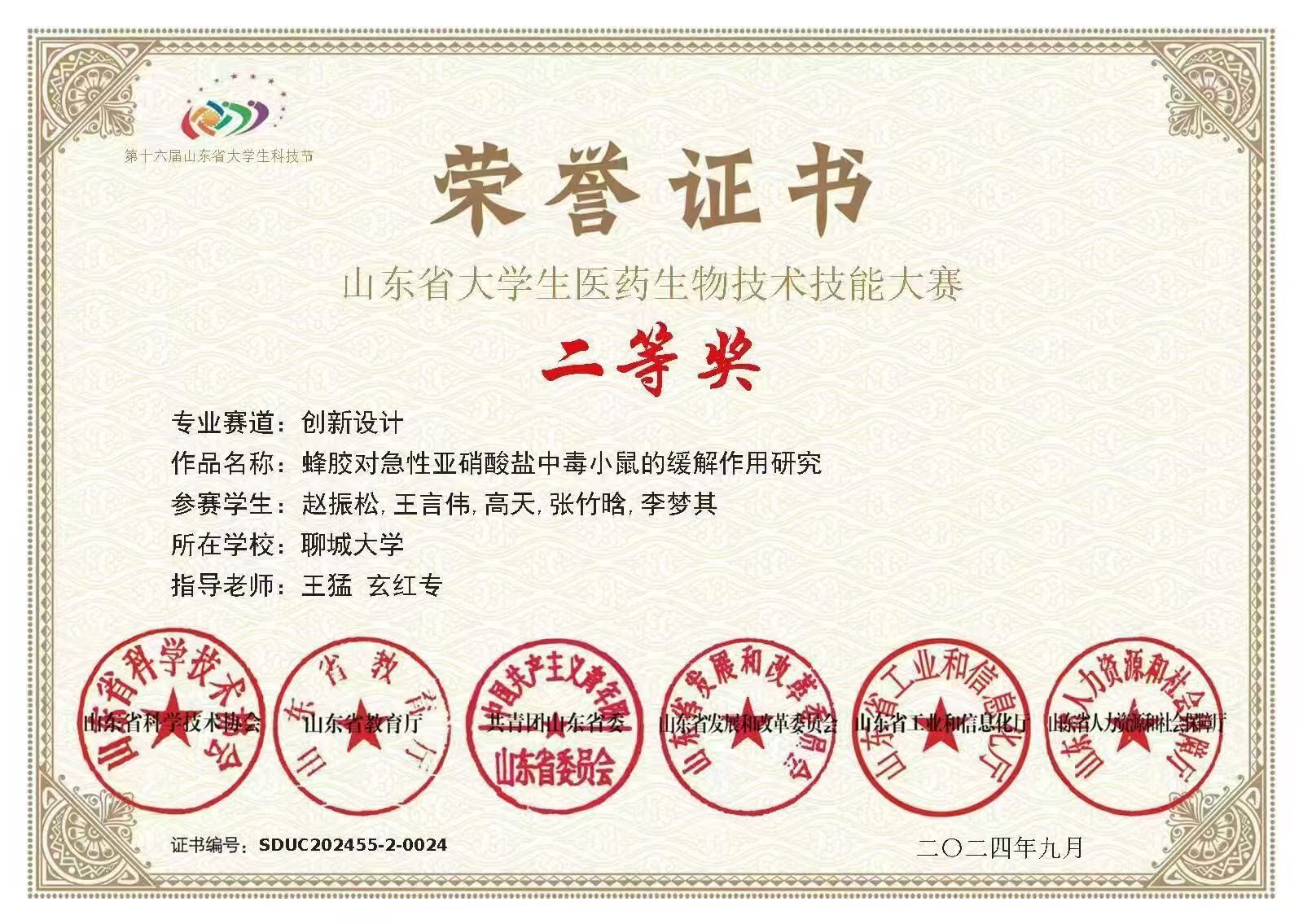 热烈祝贺无码影片 王言伟荣获“山东省大学生生物化学技能与创新创业大赛(2024,创新创业类)”二等奖