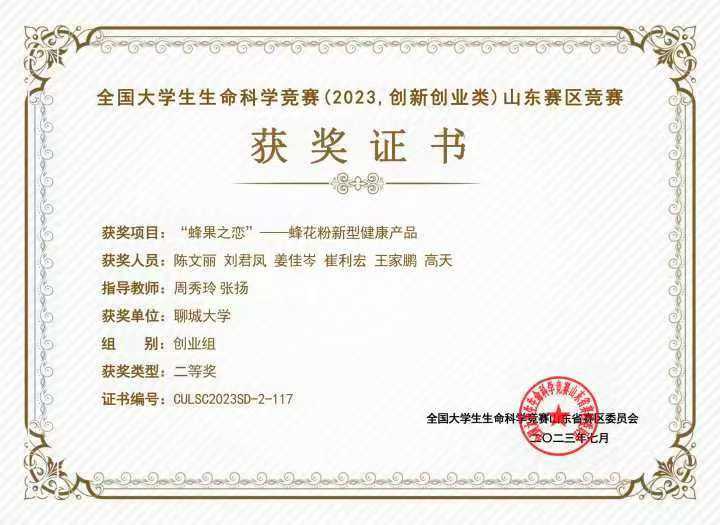 热烈祝贺无码影片 王家鹏荣获“山东省大学生生物化学技能与创新创业大赛(2024,创新创业类)”二等奖