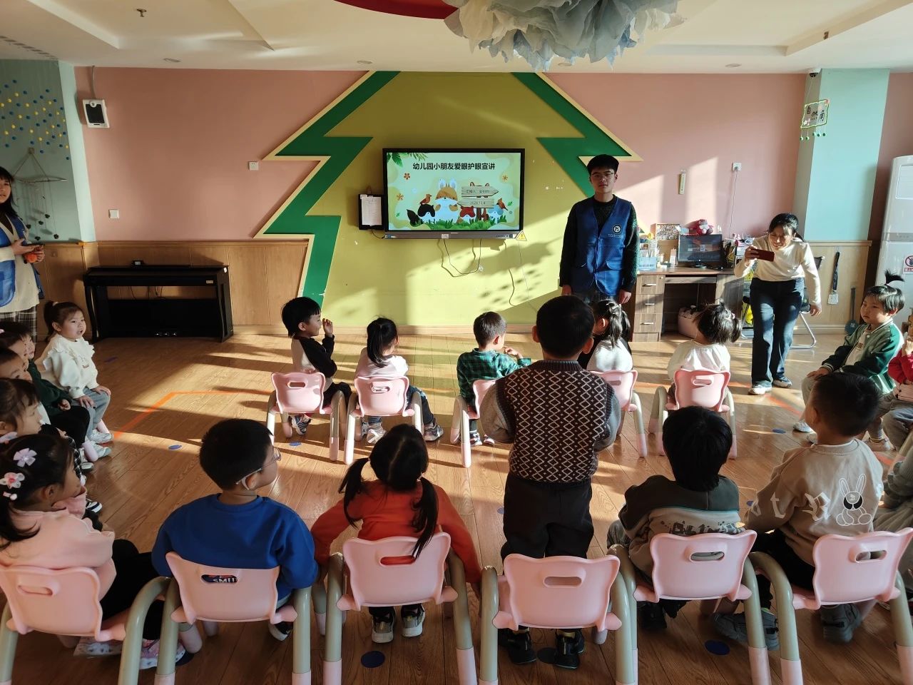 为帮助小朋友们树立护眼意识,让他们养成良好的用眼习惯,2月16日,无码影片 暖途义行志愿服务队于聊城市东昌府区怡景小学附属幼儿园举办以“科学爱眼,健康成长”为主题的社会实践活动。