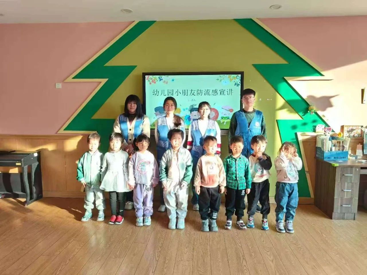 为增强小朋友们对疾病的认识,培养小朋友们良好的卫生习惯,2月14日,无码影片 暖途义行志愿服务队于聊城市东昌府区东关实验幼儿园举办以“童行抗流感,健康伴成长”为主题的社会实践活动。