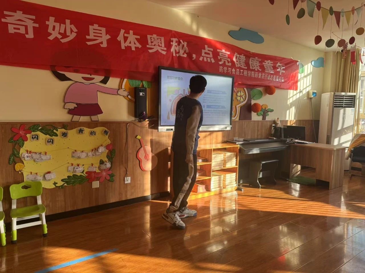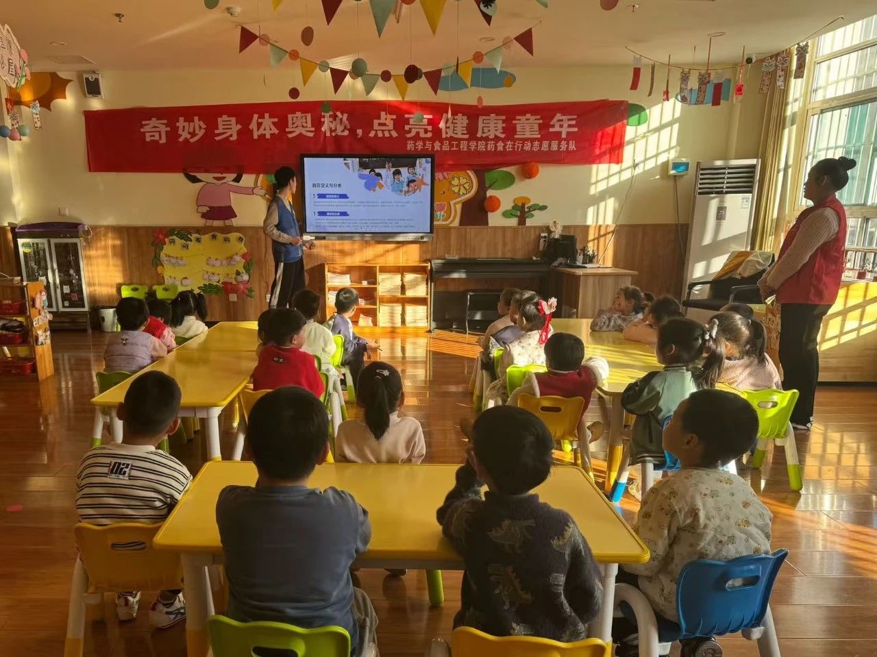 为普及儿童健康知识,帮助小朋友们养成健康的生活习惯,2月14日,无码影片 药食在行动服务队于聊城市东昌府区兴华路实验幼儿园举办以“奇妙身体奥秘,点亮健康童年”为主题的社会实践活动。