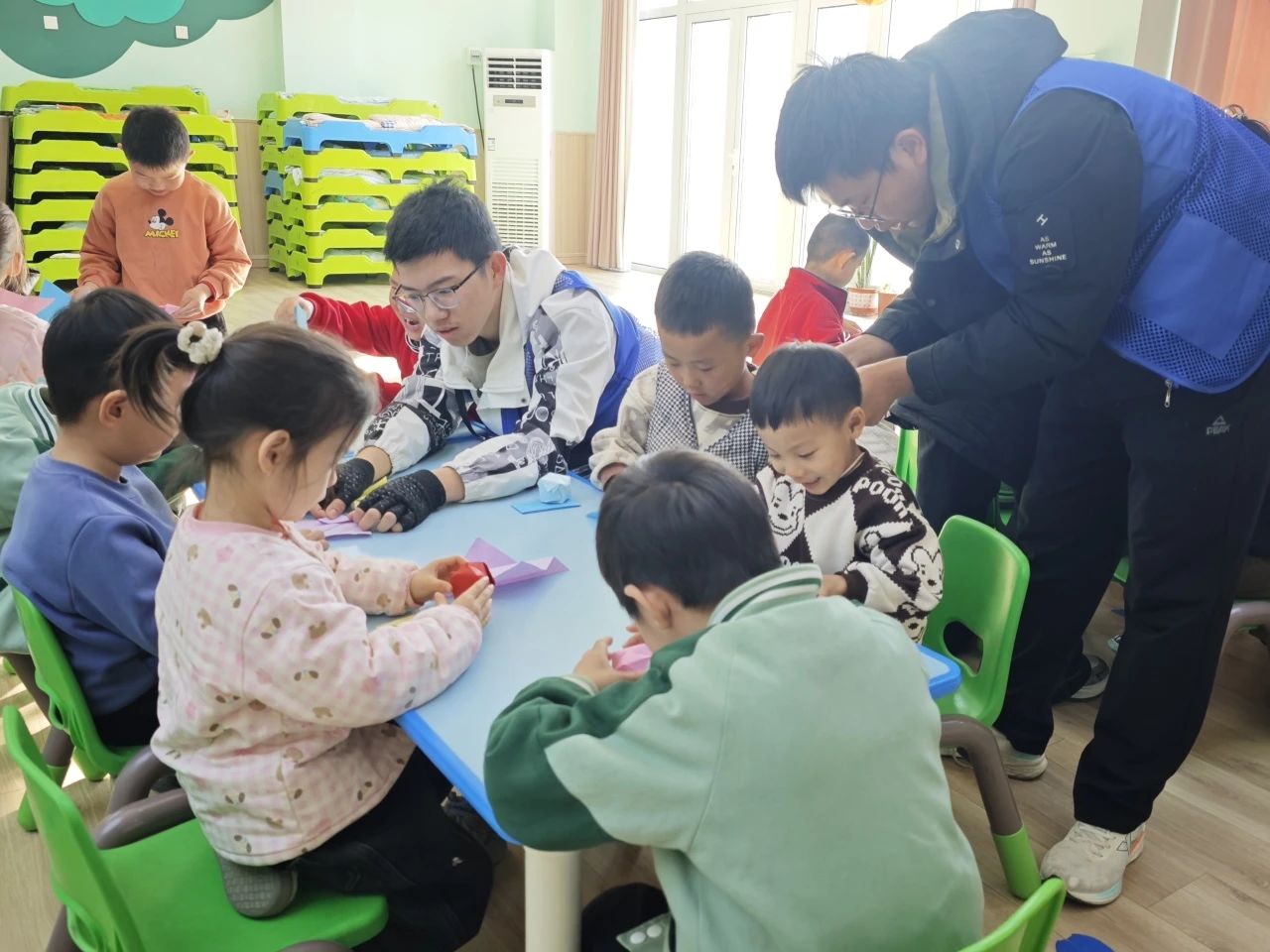 为弘扬传统年俗文化,培养小朋友们的动手能力和手眼协调能力,2月11日,无码影片 生翼护医志愿服务队于聊城市东昌府区明达街实验幼儿园举办以“折纸妙趣塑年俗,童心巧手绘新春”为主题的社会实践活动,团队成员积极参与其中。