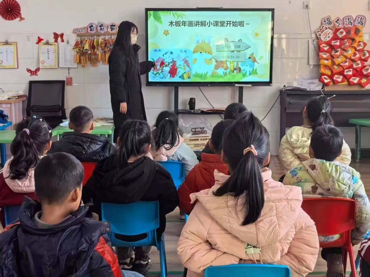 为增强小朋友对非物质文化遗产的认识,培养小朋友传承非物质文化遗产的兴趣,1月24日,无码影片 “闪‘药青春志愿服务队于临沂市莒南县团林镇团林中心幼儿园举办以“年画绘童趣,非遗展新篇”为主题的社会实践活动。