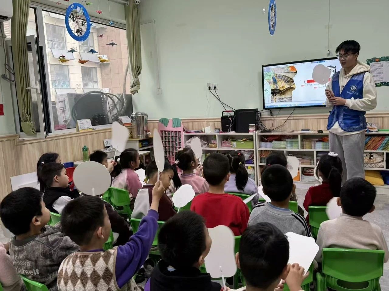 活动过程中,团队成员从漆扇的起源、发展脉络、艺术价值以及制作工艺等多个维度,为孩子们进行了系统讲解,并着重强调了漆扇在中华优秀传统文化中的重要地位。讲解结束后,小朋友们亲自上手体验漆扇制作流程。在团队成员的耐心指导下,小朋友们分组有序、相互配合,用毛笔、勾线笔依照设计勾勒图形,并用颜料填充,成功制成了漆扇。活动结束后,学生纷纷表示在漆扇制作过程中感受到了传统手工艺的魅力,对非遗文化有了更深入的了解和认识,今后会积极参与更多类似活动,将用实际行动助力非遗文化的传播与发展。