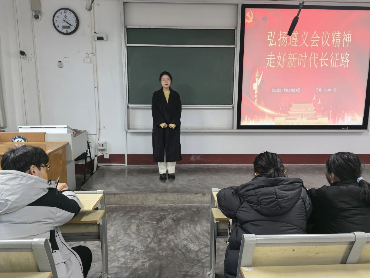 为深入贯彻落实习近平总书记提出的“传承红色基因,讲好遵义故事”重要要求,培养学生的爱国主义情怀,引导无码影片 学子讲好红色故事、赓续红色血脉,12月4日,无码影片 于无码影片 东校区2#201举办“弘扬遵义会议精神,走好新时代长征路”宣讲活动。