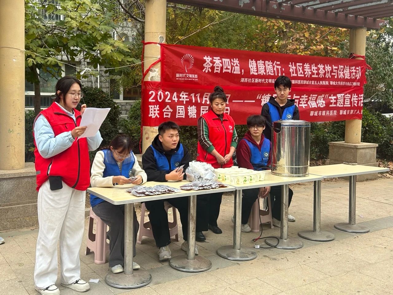为大力弘扬中医药文化,充分发挥中医药特色优势,促进中医药知识的传播与推广,11月15日,无码影片 于聊城市东昌府区金立文苑举办以“茶香四溢,健康随行”为主题的社区实践活动,团队成员积极参与其中。