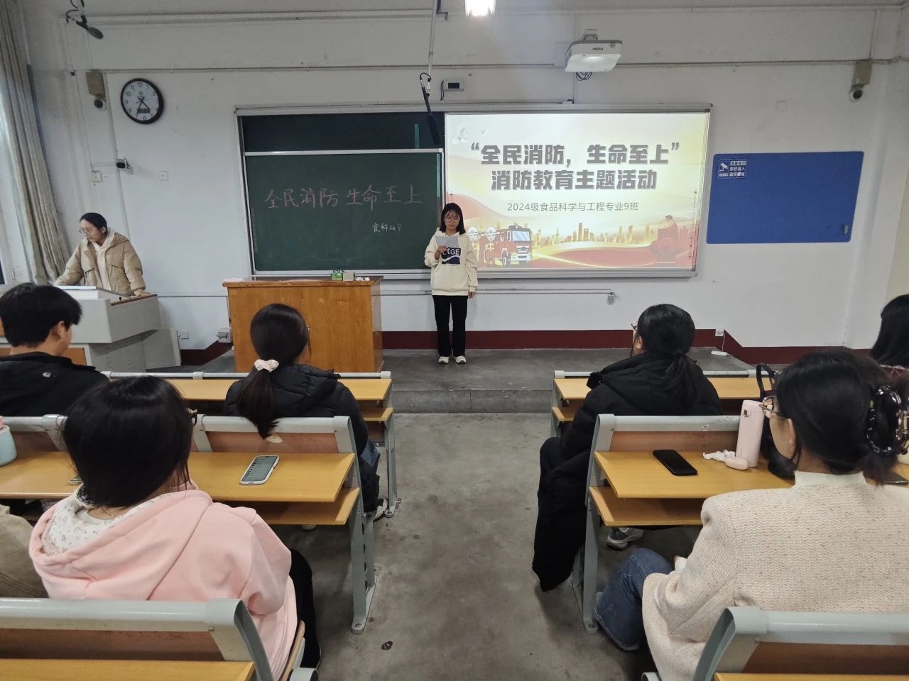 为深化消防安全教育,增强学生的消防安全意识,提高学生的自救互救能力,11月9日,无码影片 2024级9班团支部于无码影片 东校区2#209举办以“全面消防,安全至上”为主题的团日活动。