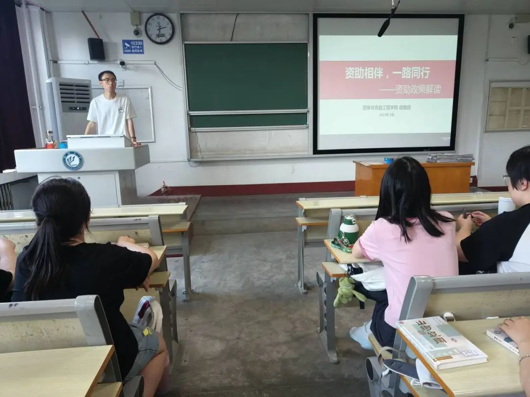 徐致远紧紧围绕高校相关资助政策、各项奖学金与助学金、“润育梦想”——学校资助育人特色课程、其他资助政策四方面展开讲解,详细介绍了国家奖学金、省政府奖学金、国家励志奖学金、省政府励志奖学金、少数民族励志奖学金和国家助学金等不同奖助学金的申请流程、评审标准、奖励金额等信息,使学生们对各项政策有了较清晰地认识。徐致远强调了资助育人的重要性和意义,资助不仅仅是经济上的帮助,更是对学生们精神世界的关注和呵护。同时,徐致远强调信用的重要性,告诫学生们一定要树立诚信观念、履行诚信义务,引导学生树立正确的消费观、荣辱观、价值观,并学会理性辨别网络贷款、勤工俭学信息,谨防金融诈骗。学生们纷纷表示,会珍惜国家及学校为自己提供的良好学习环境的机会,把国家关怀化为前进的动力,提高自身素质,勤奋学习,以实际行动报效国家!