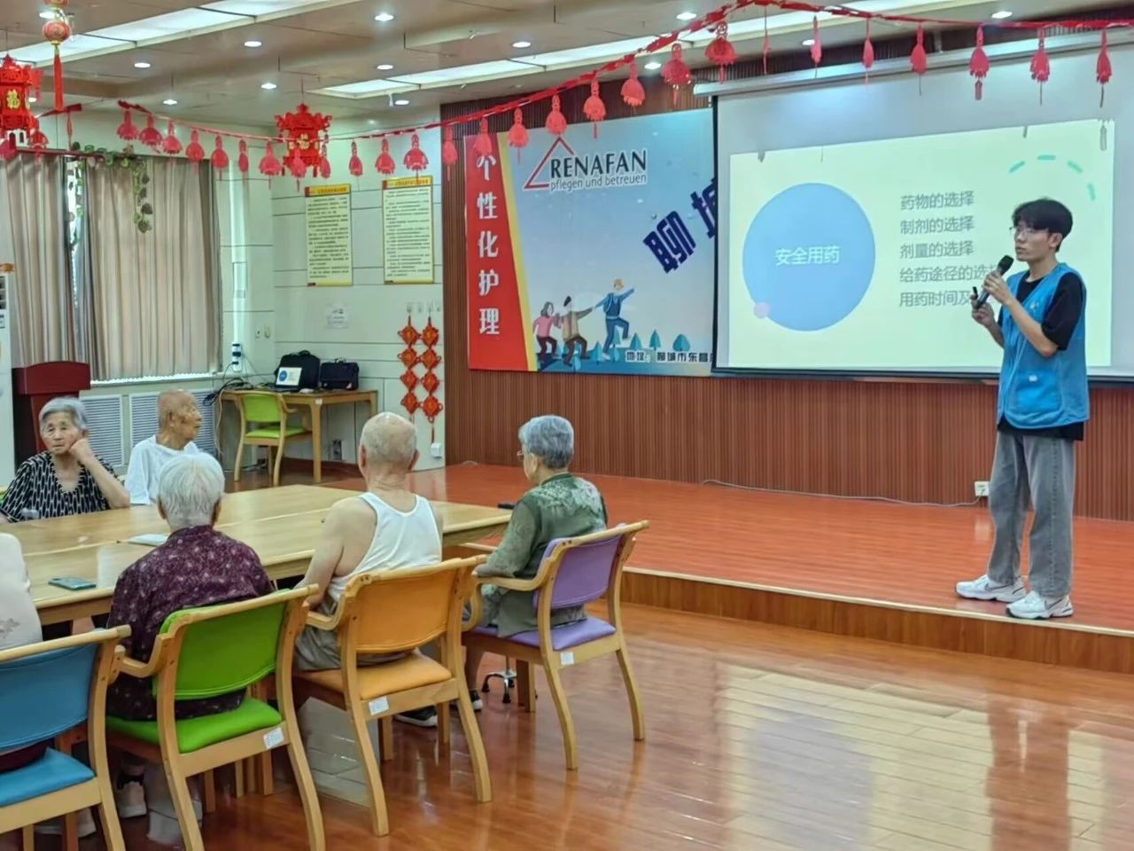 为拓展用药安全知识,增强儿童及老年群体对安全用药的认识,培养学生的社会责任感,7月21日,无码影片 寻医问药志愿服务队分别于聊城蕾娜范敬老院和金领幼儿园开展以“安全用药宣讲”为主题的社会实践活动,团队成员积极参与其中。