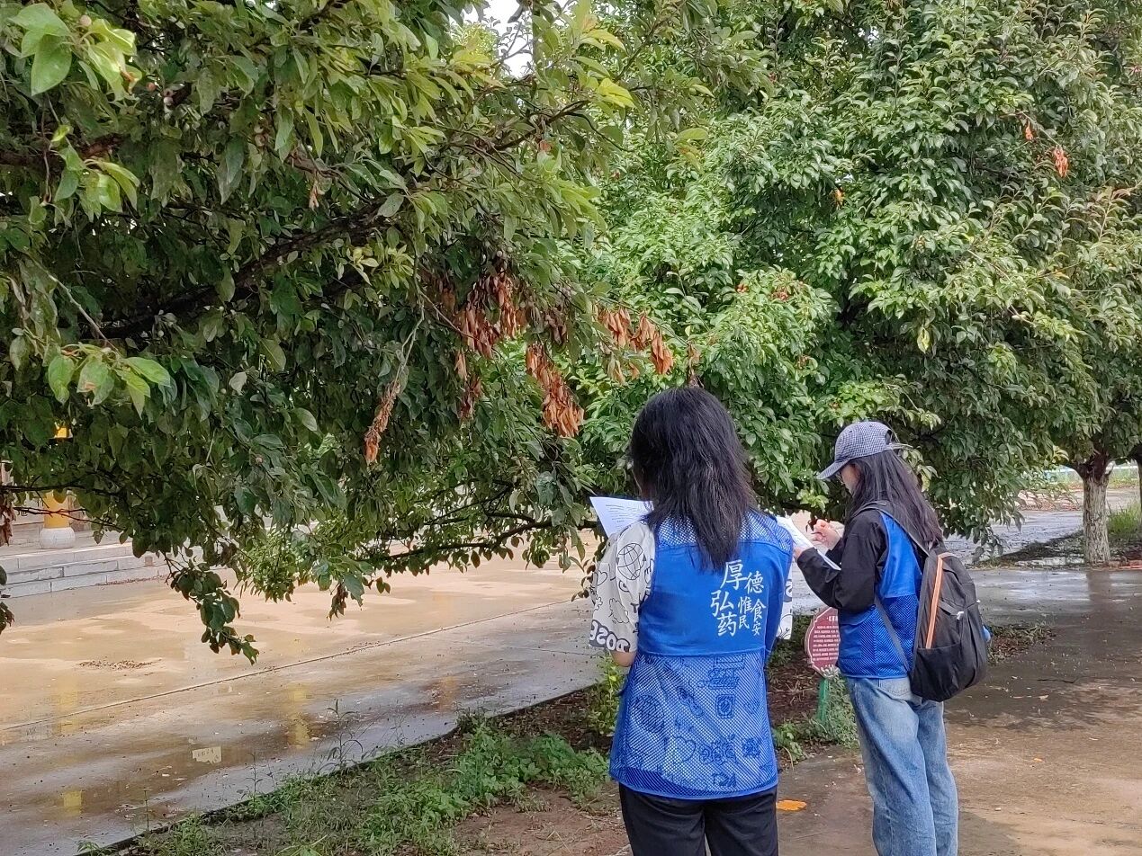 活动伊始,团队成员系统考察园区内海棠的种植技术应用现状、品种类型及空间分布特征、主要品种的生长周期表现,并详细纪录海棠品种的分布、树势,重点诊断影响果品产量及品质的病虫害、土壤肥力、水肥问题。随后,成员深入调研海棠园林下空间资源特点,评估发展林下种植(如药材、食用菌、耐阴花卉等)、林下养殖(如禽类、昆虫等)、文旅活动融合(如自然教育、休闲体验、生态观光)等复合经营模式的可行性。活动结束后,团队成员纷纷表示,海棠资源是连接青年力量与乡村需求的宝贵桥梁,是赋能乡村精准诊断、链接外部支持、激发内生动力的关键动能。