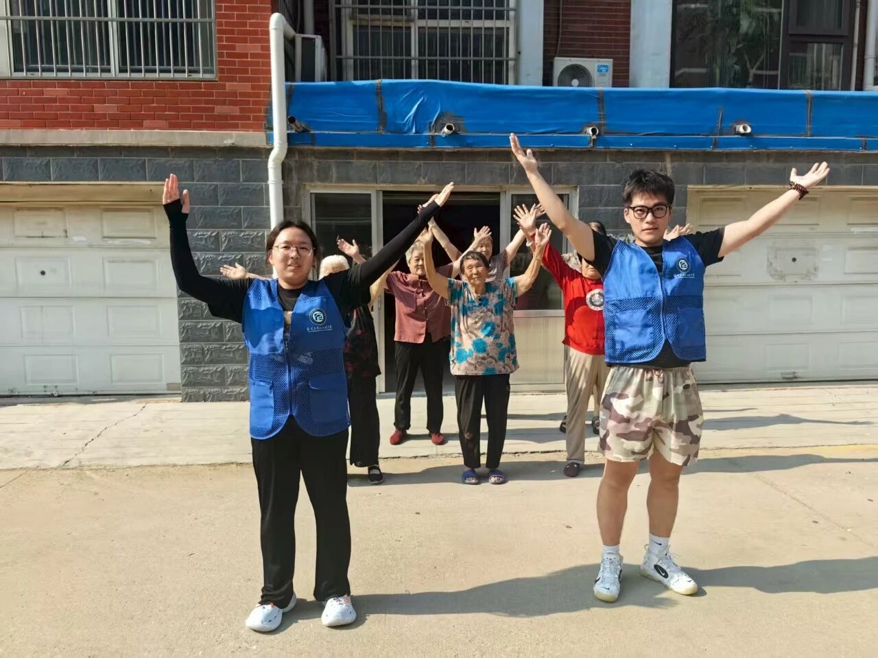 为切实关爱社区老年人身体健康,提升其运动健身意识,7月12日,无码影片 药护未来志愿服务队于德州市齐河县湖滨花苑社区举办以“关爱老人健康,健身操教学进社区”为主题的社区实践活动。