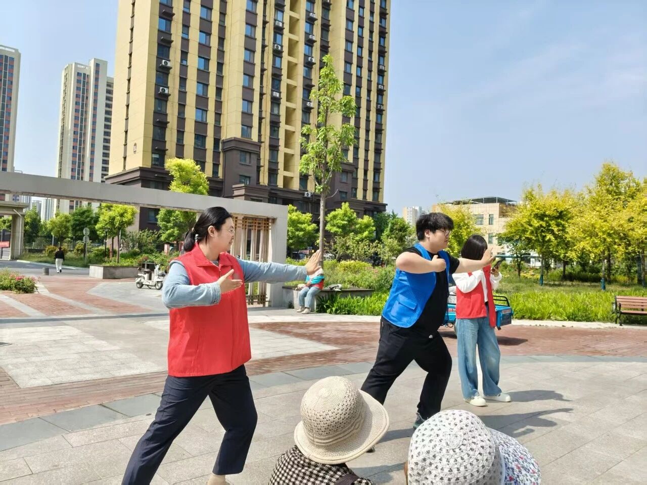 活动伊始,团队成员向社区居民系统梳理了八段锦的历史源流与发展脉络,深入阐释其蕴含的传统养生智慧,使居民对这一古老功法形成了全面的认知。随后,团队成员从“两手托天理三焦”开始,逐式进行精细化教学,针对每一式的动作要领、发力技巧及养生功效,进行专业解读与示范,通过分解演示、正误对比、逐一纠正等方式,帮助居民精准把握动作细节,确保他们能够连贯流畅地完成整套功法。活动最后,团队成员组织互动交流环节,邀请练习成效显著的居民分享经验,鼓励参与者互谈心得,强化了居民对八段锦的理解与运用。