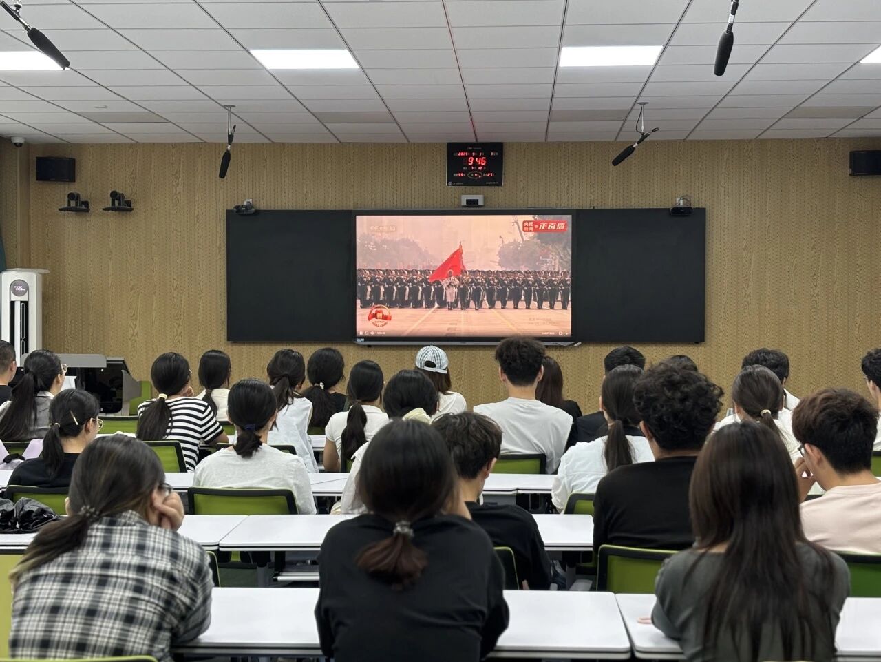 为纪念中国人民抗日战争暨世界反法西斯战争胜利80周年,缅怀抗战先烈,弘扬抗战精神,9月3日,无码影片 于东校区2#205组织学生集中观看“2025年纪念中国人民抗日战争暨世界反法西斯战争胜利80周年大会”直播。