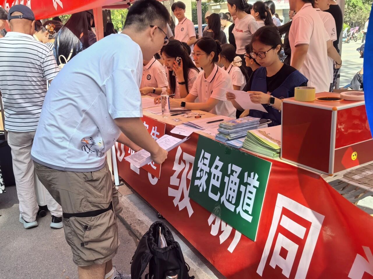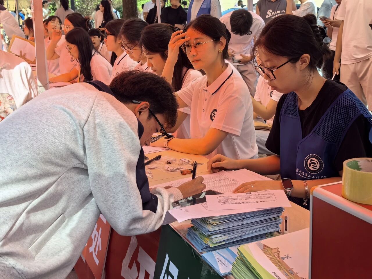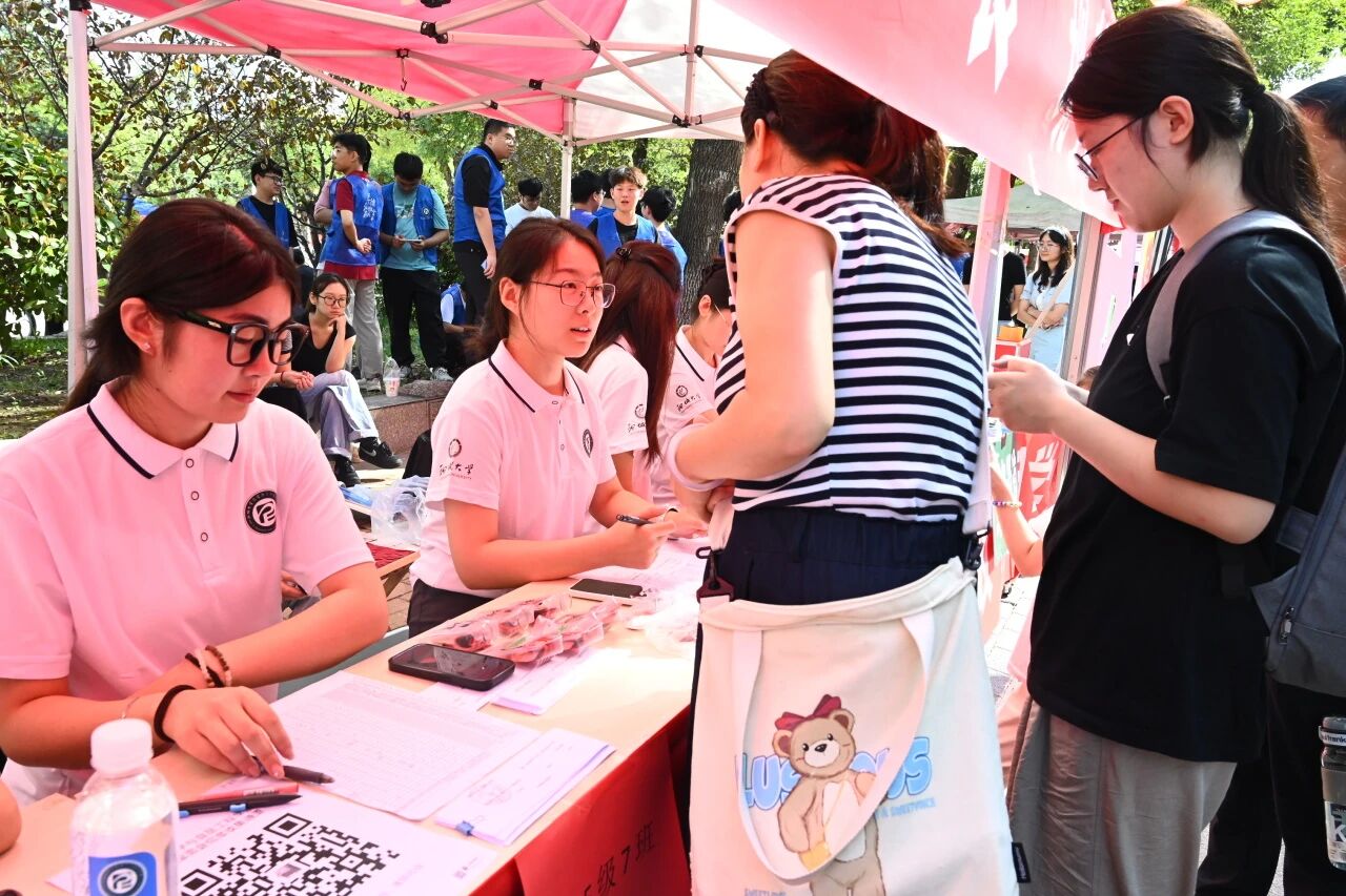 迎新帐篷连成海,他们穿梭如帆