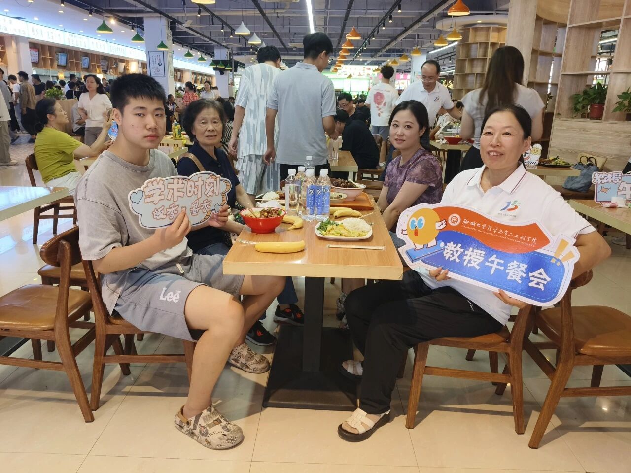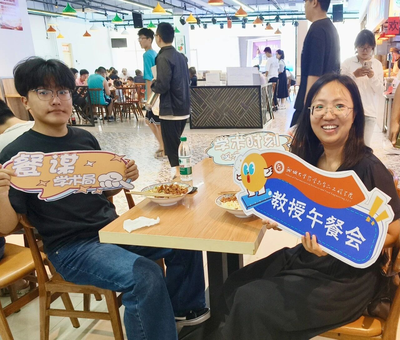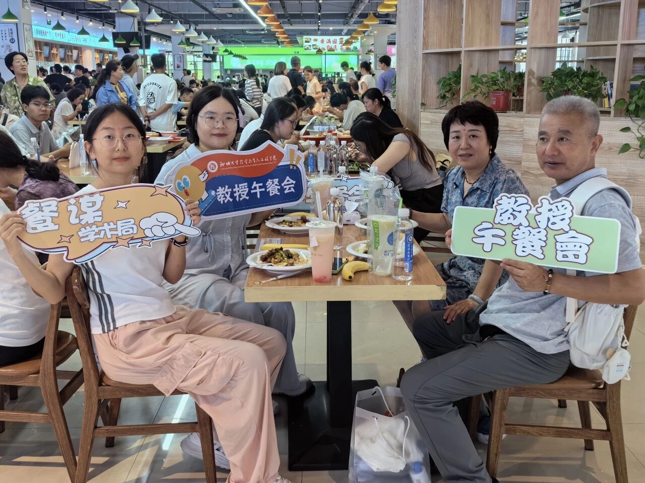 餐盘轻端,师生并肩坐成行