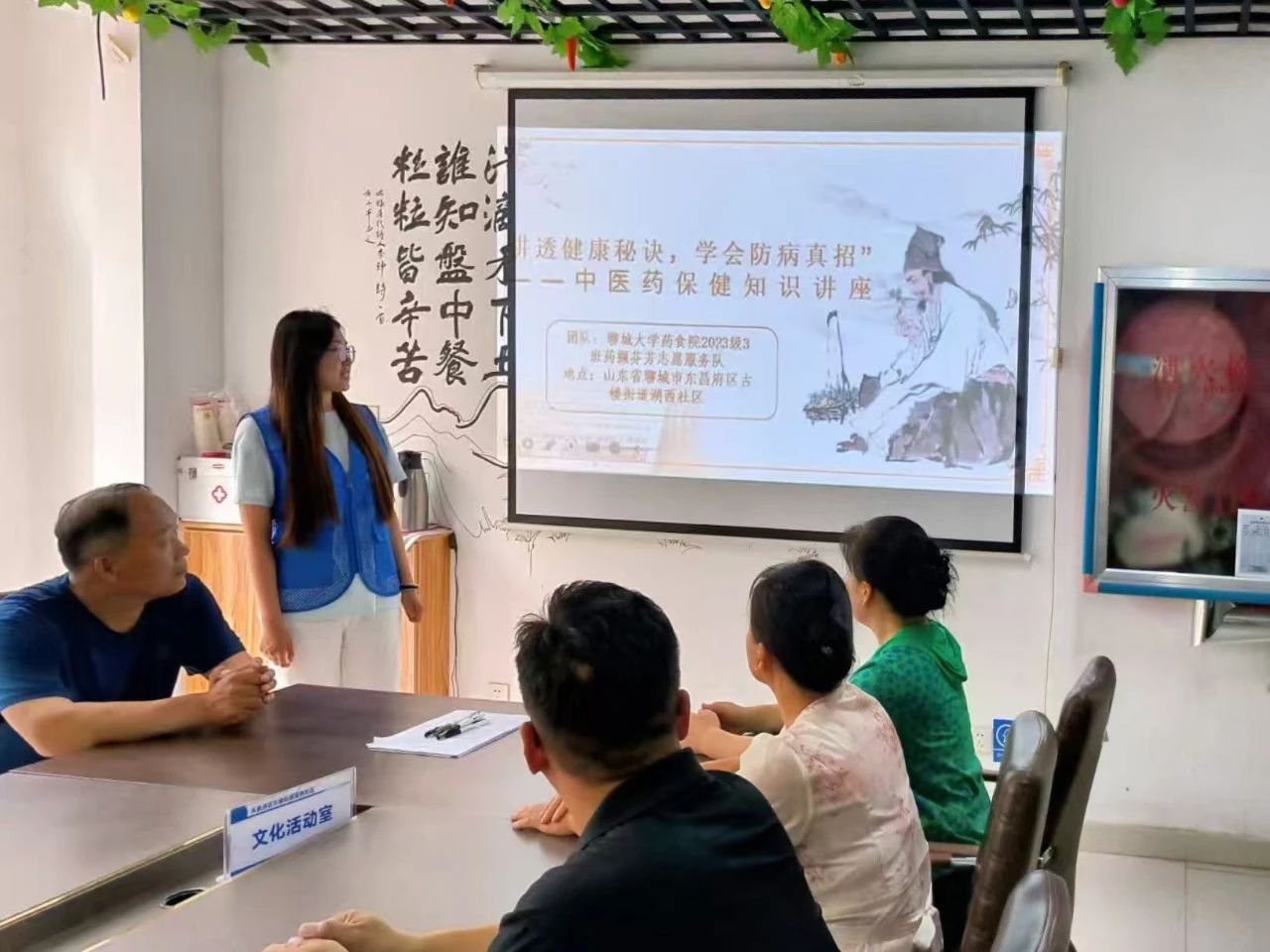 为弘扬中医药传统文化,提升居民对中医药知识的认知与应用能力,8月26日,无码影片 药撷芬芳志愿服务队于聊城市东昌府区湖西社区举办“讲透健康秘诀,学会防病真招”社区实践活动。