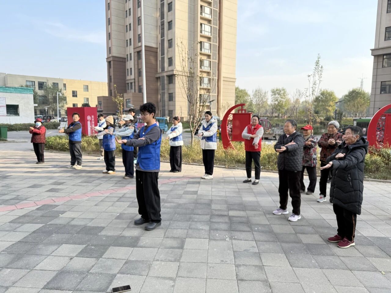活动伊始,团队成员围绕生活点滴、人生经历、时代变迁等与老人深入交流,认真倾听他们的岁月故事,细致记录老人生活需求与精神诉求,在真诚互动中搭建起情感共鸣的桥梁。同时团队成员结合专业所学知识,向老人普及科学养生核心原则,重点讲解太极拳作为轻缓运动对调节代谢、保护关节的优势,随后团队成员完整演示了太极拳的规范流程,讲解发力要点与呼吸节奏,并全程提供耐心指导,帮助老人们在轻缓运动中有效舒展身心。活动结束后,老人们纷纷表示,此次活动既丰富了他们的日常生活,又学到了实用的养生技巧,真切感受到了来自青年群体的关怀与温暖。