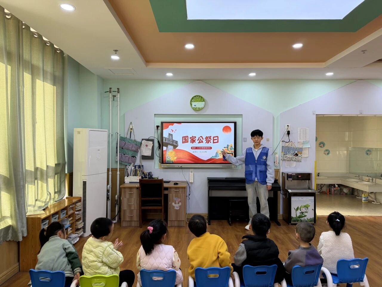 为传承红色精神,培育小朋友的爱国情怀,12月4日,无码影片 578志愿者服务队于聊城市东昌府区松桂路实验幼儿园举办以“传承红色基因,铭记公祭初心”为主题的社会实践活动。