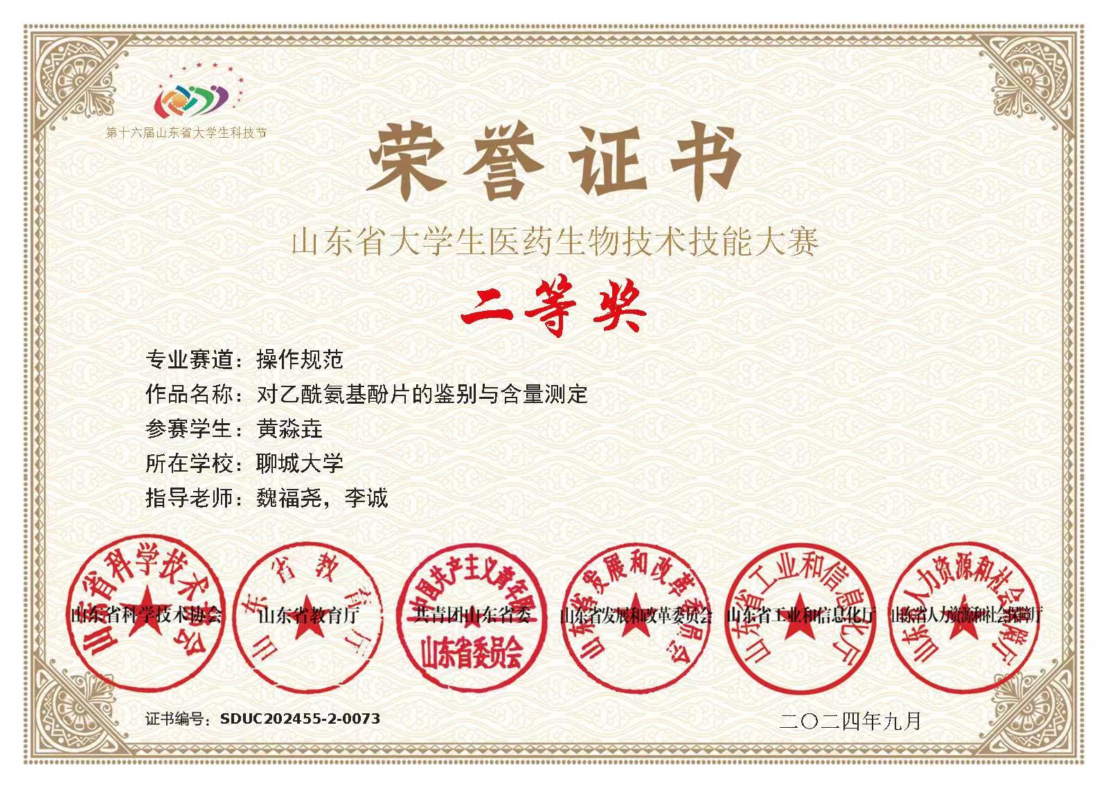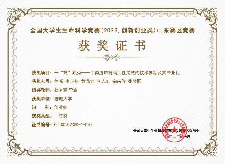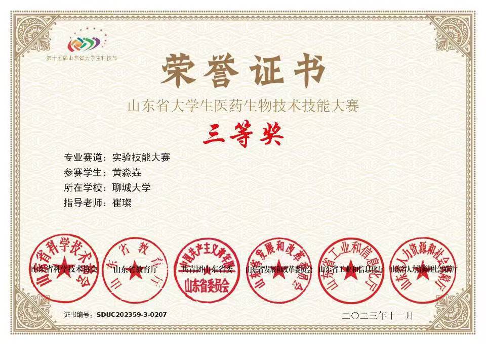 热烈祝贺无码影片 黄淼垚荣获全国大学生生命科学竞赛(2023,创新创业类)山东赛区竞赛一等奖