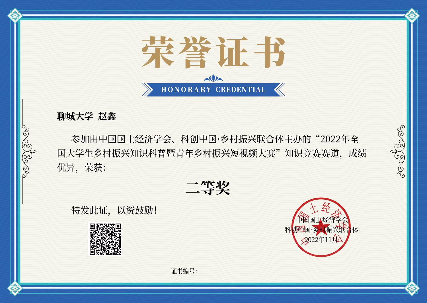 热烈祝贺药学院赵鑫荣获“2022年全国大学生乡村振兴知识科普暨青年乡村振兴短视频大赛”二等奖