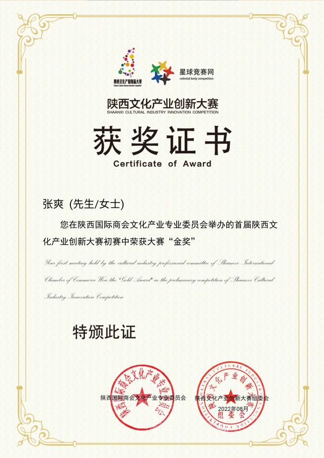 热烈祝贺药学院张爽荣获“陕西文化产业创新大赛初赛”金奖