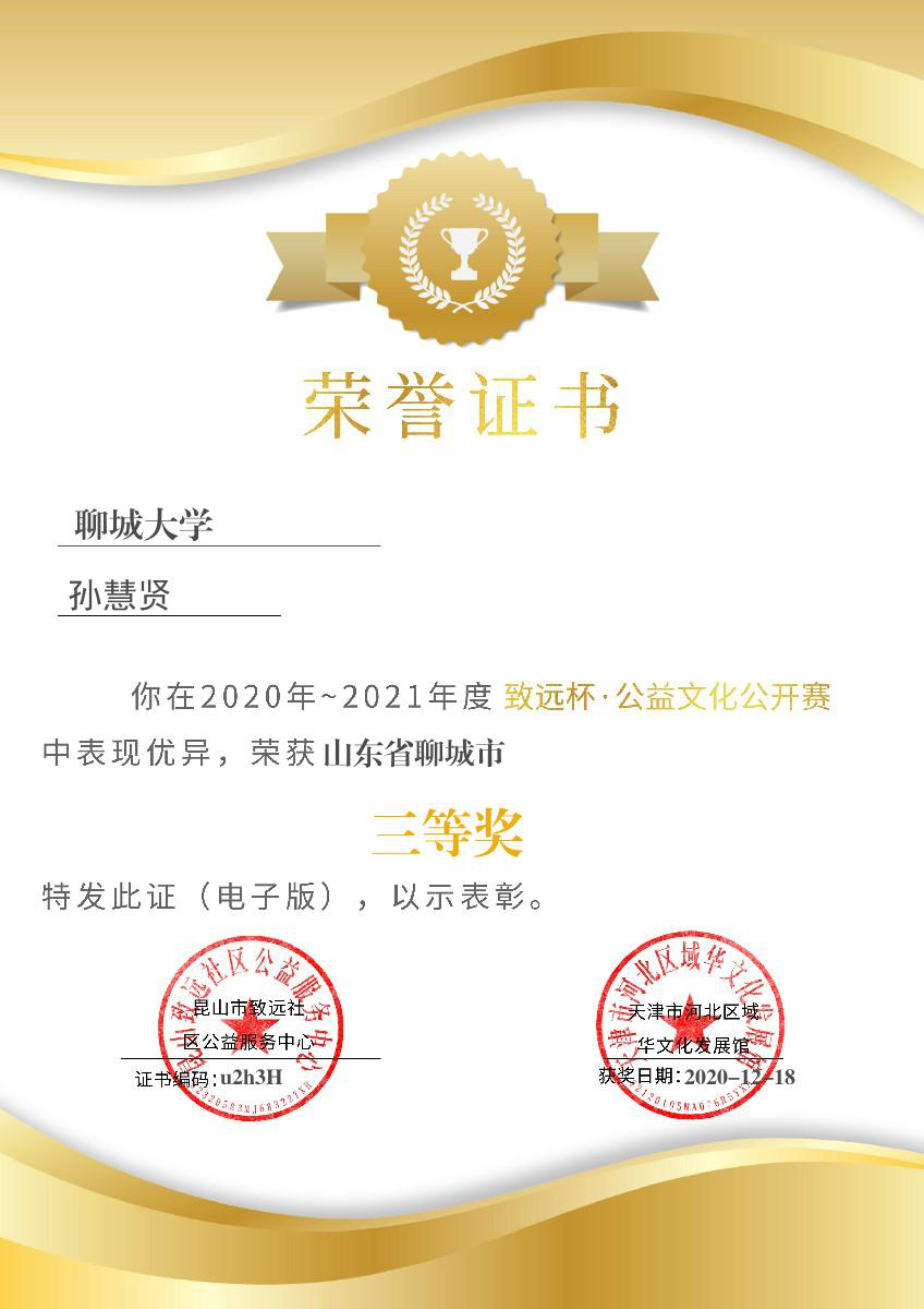 无码影片 孙慧贤获“致远杯公益文化公开赛”三等奖