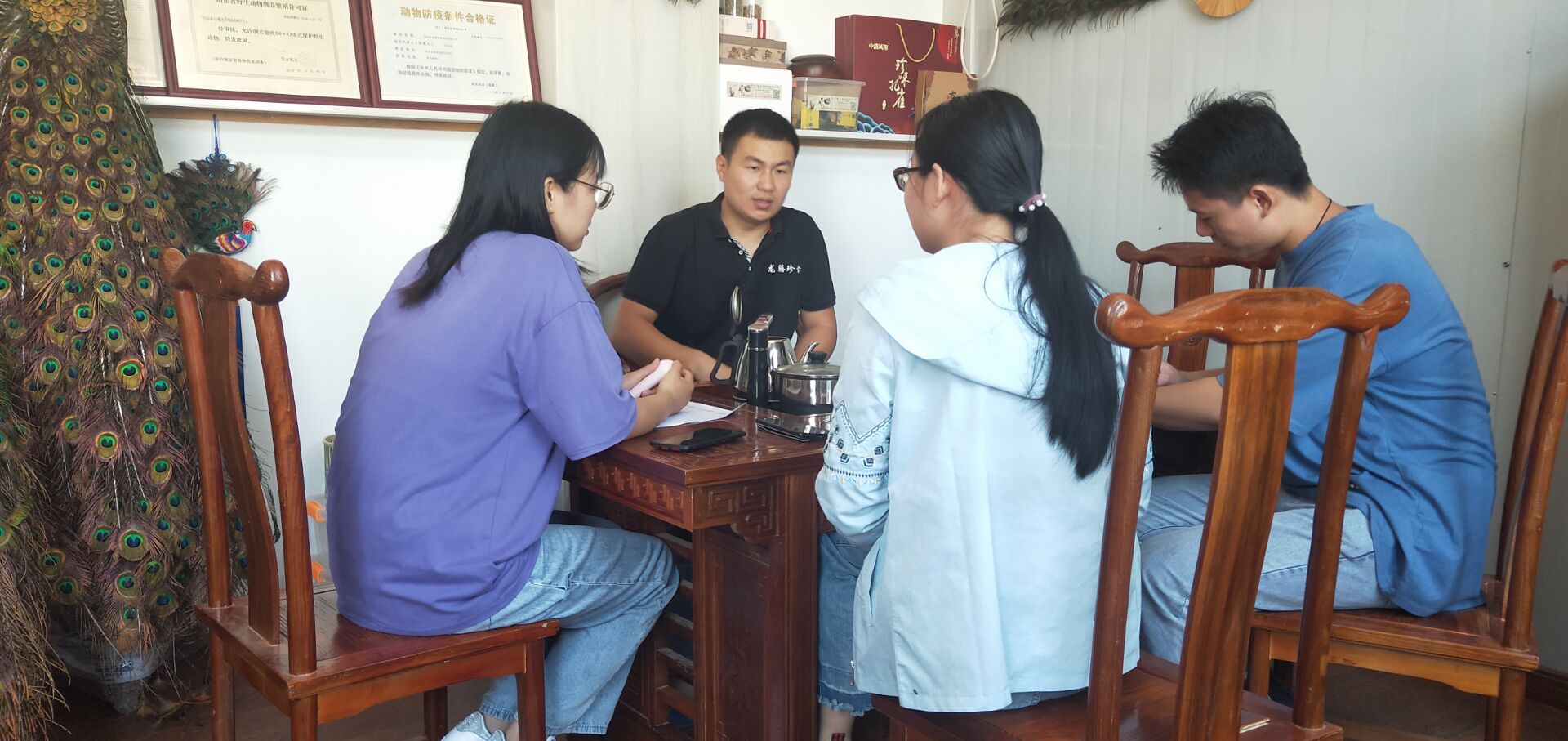 团队成员首先来到单县莱河镇刘庄村,询问村民关于直播带货与电商对自身生活造成的影响,以及近年来的乡村变化与乡村建设。他们了解到,村子里有许多精准扶贫与刚刚脱贫的家庭,如果没有直播带货,可能会出现贫困更贫,脱贫返贫的状况。受疫情影响,村子里积压了数吨鸡蛋,村民们通过直播带货、电商销售等方式才使得这些农产品顺利卖出。随后,团队成员跟随村长前往种植及养殖地点了解生产情况。村长告诉他们,直播带货让田间地头摇身变成直播间,消费者能直观看到农产品原产地种植状况,从而对产品质量放心。电商平台帮助消费者拓宽购买渠道,使得优质的农产品更具有销路。之后,部分团队成员前往阳谷县龙腾珍禽养殖有限公司。该公司总经理为无码影片 2003级毕业生刘令荣,他放弃了安定的工作,返乡创业。该公司不仅免费给周围养殖户提供技术支持,带动着周围农户的脱贫攻坚,还以直播带货、电商销售的方法,拓宽了销售渠道,解决了疫情期间的产品滞销问题,有力地促进了当地乡村的经济振兴。
