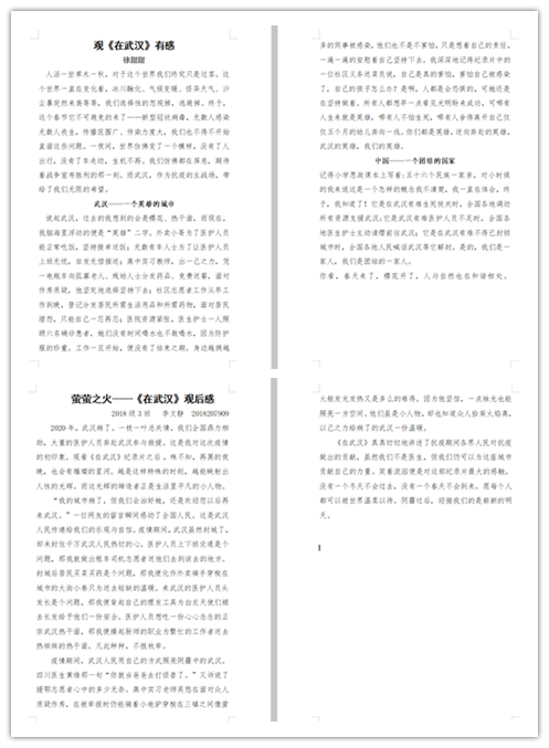清明,一个缅怀英烈、致敬英烈的节日,在这个沉重而悲痛的日子里,学生们通过观看《在武汉》纪录片了解到从老百姓到各岗位工人、从病人到医护工作者在本次抗击疫情中做的努力。参与观看的学生们被抗击疫情的事迹所折服,并执笔写下观影时的所感所悟,字里行间透出对先烈的浓浓敬意。学生们用最质朴的语言、最诚挚的情感致敬此次疫情期间奋战的英雄:“你们是我们的榜样,你们伟大的逆行精神值得我们去学习。我们盼望在风雨后的阳光下等待你们平安归来!”