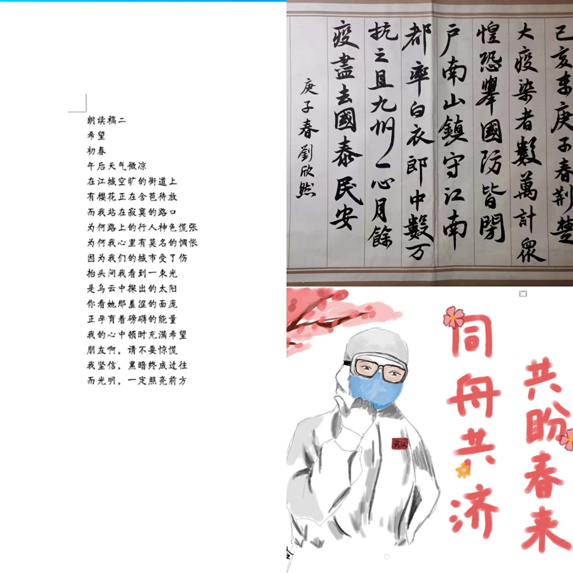 为表达对奋战在一线的医护人员的感谢,以及对美好生活的渴望,药学院特举办“讴歌英雄,共盼春来”活动。活动宣传结束后,报名者络绎不绝,准备的形式也是多种多样,异彩纷呈。有的学生专注于书写抗疫过程中一线医护人员的辛苦操劳,抒发自己难以言表的感激之情;有的学生则是将镜头指向一位位从病魔手中成功逃脱的患者,借此讴歌每一位白衣天使的慷慨付出;有的学生将重点放在微不足道的“小事”上,细致地分析社区工作者们的平凡与伟大。此次活动中,学生们从各方面剖析了疫情里逆行者们的奉献与风险,在讴歌英雄,赞颂他们英雄本色的同时,学生们更深层次地意识到了青年们责任与担当。