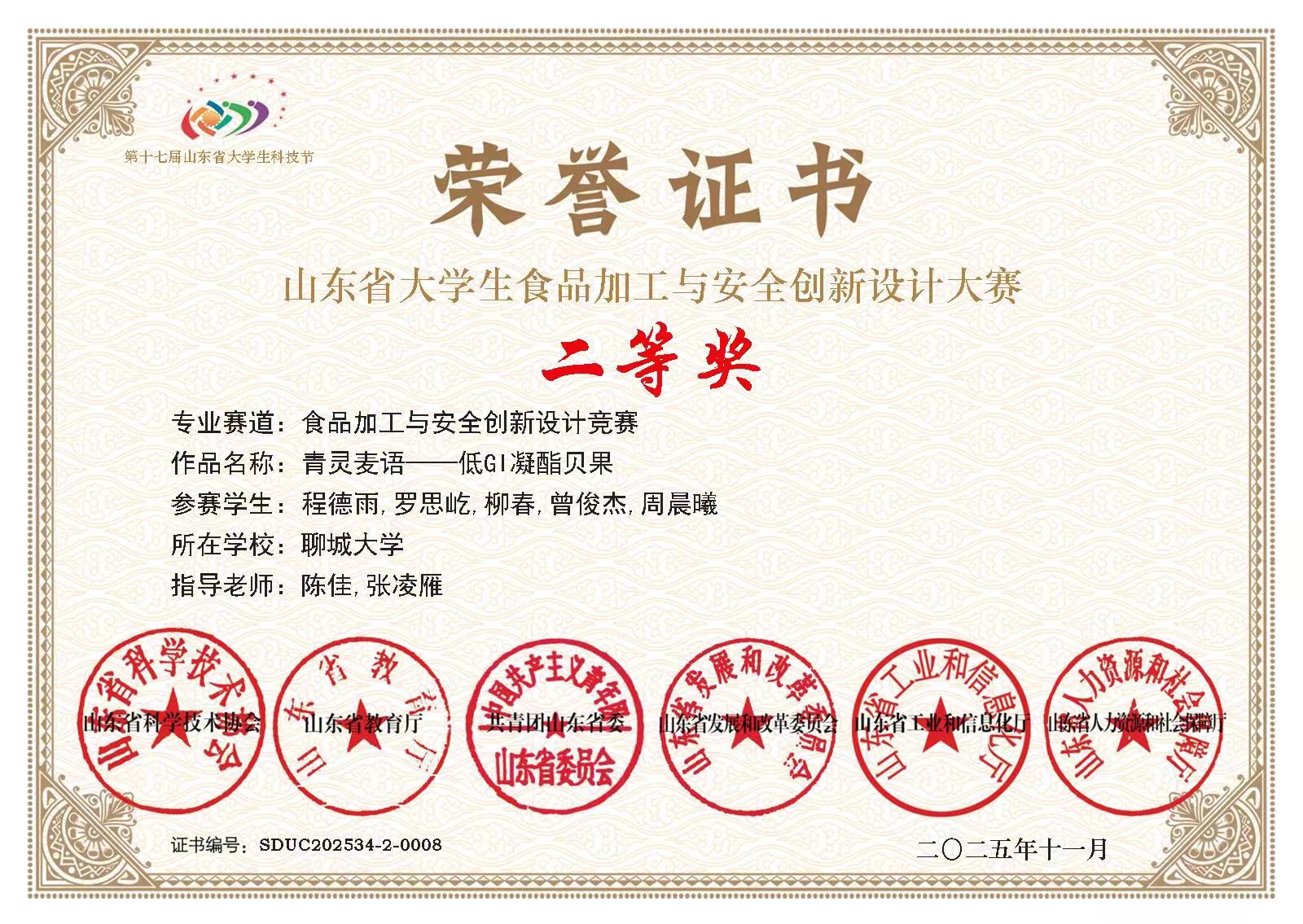 热烈祝贺无码影片 柳春荣获山东省大学生食品加工与安全创新设计大赛二等奖
