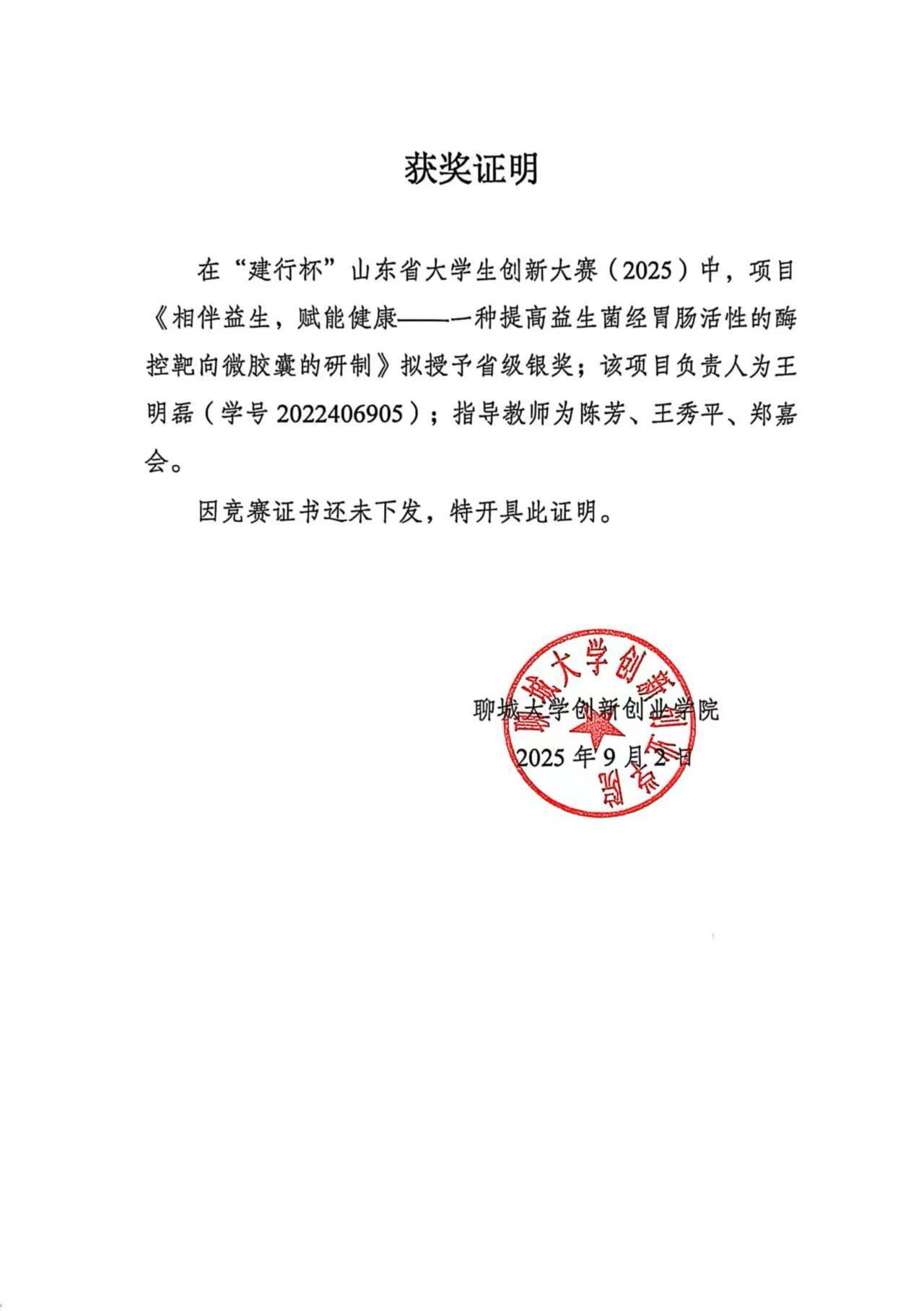 热烈祝贺无码影片 张家硕荣获“建行杯”山东省大学生创新大赛(2025)省级
