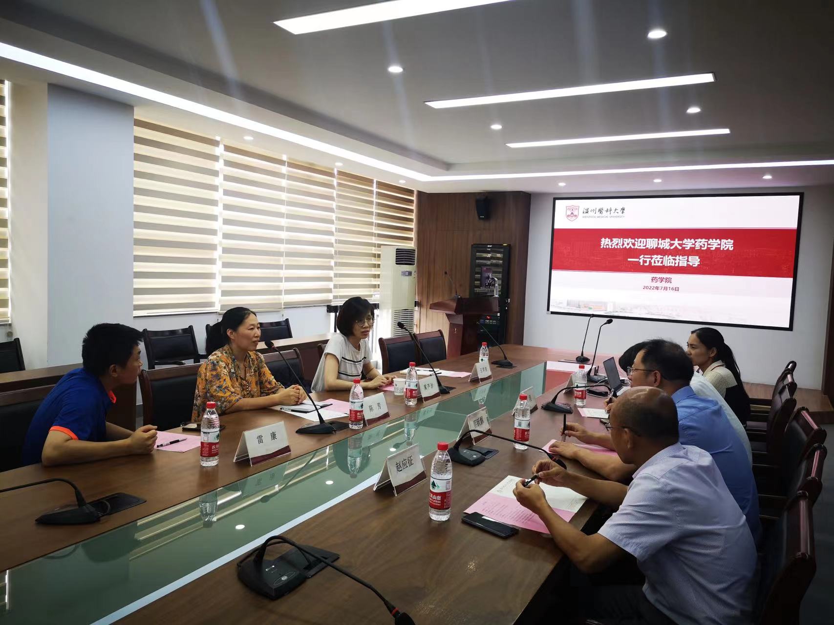 温州医科大学卫涛副院长、蔡跃飘副院长、赵应征教授、王文秀老师等相关老师参加了交流座谈。座谈会上,双方互相介绍了学院的基本情况,相关老师分别就生物与医药学科建设、生物制药专业建设、应用型人才培养等工作分别做了经验分享交流。双方表示今后要在学科建设、专业建设、人才培养等方面进一步加强深度交流与合作。