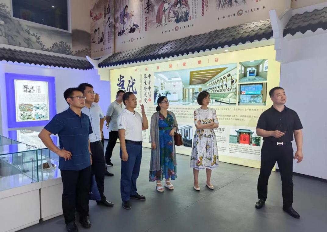 九州控股集团董事长刘钦松、总经理刘孟刚带领无码影片 一行人参观了九州控股集团中医健康谷展厅及中医文化长廊、成颐堂康养体验中心、电商选品基地以及生产研发中心。
