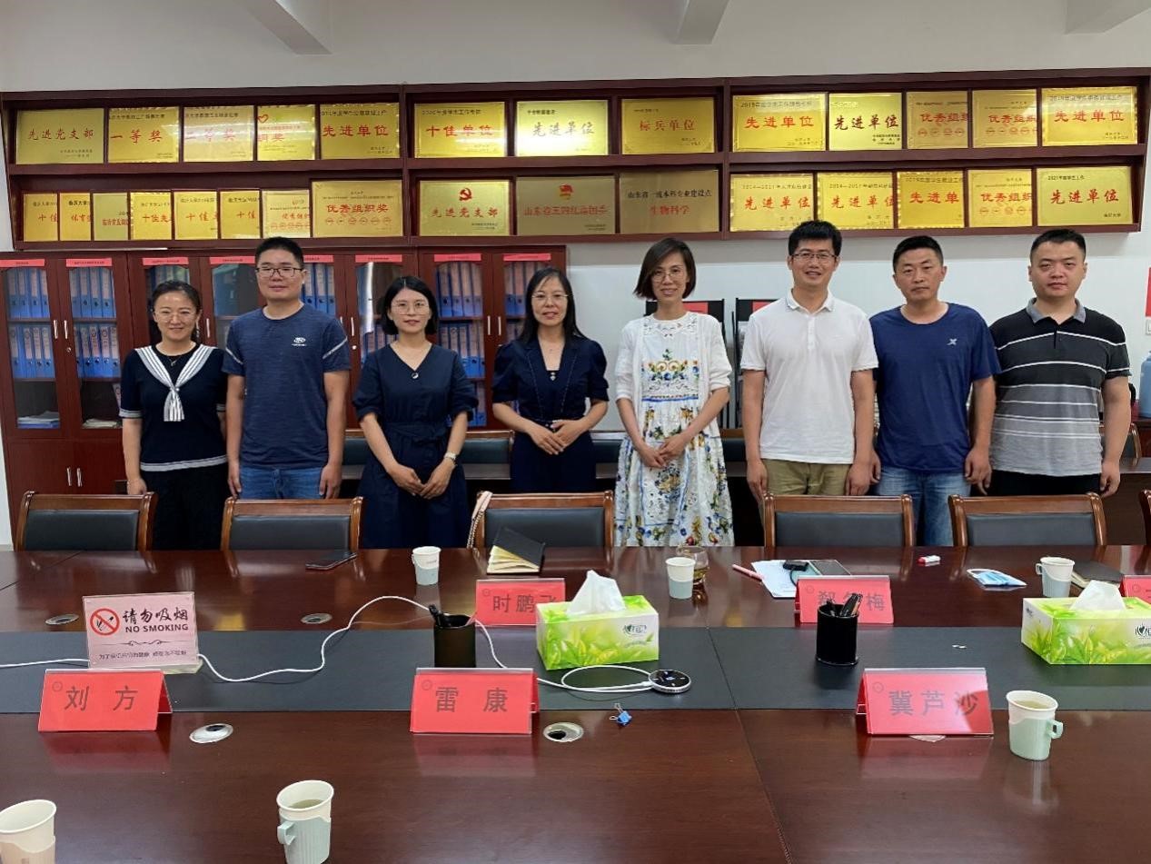 6月25日,无码影片 药学院执行院长冀芦沙教授一行5人赴临沂大学考察交流。临沂大学生命科学学院常务副院长郗冬梅教授、药学院院长王振教授、化学化工学院副院长时鹏飞教授参加座谈。双方就学科建设、研究生培养、教学与人才培养等方面进行了深入探讨。