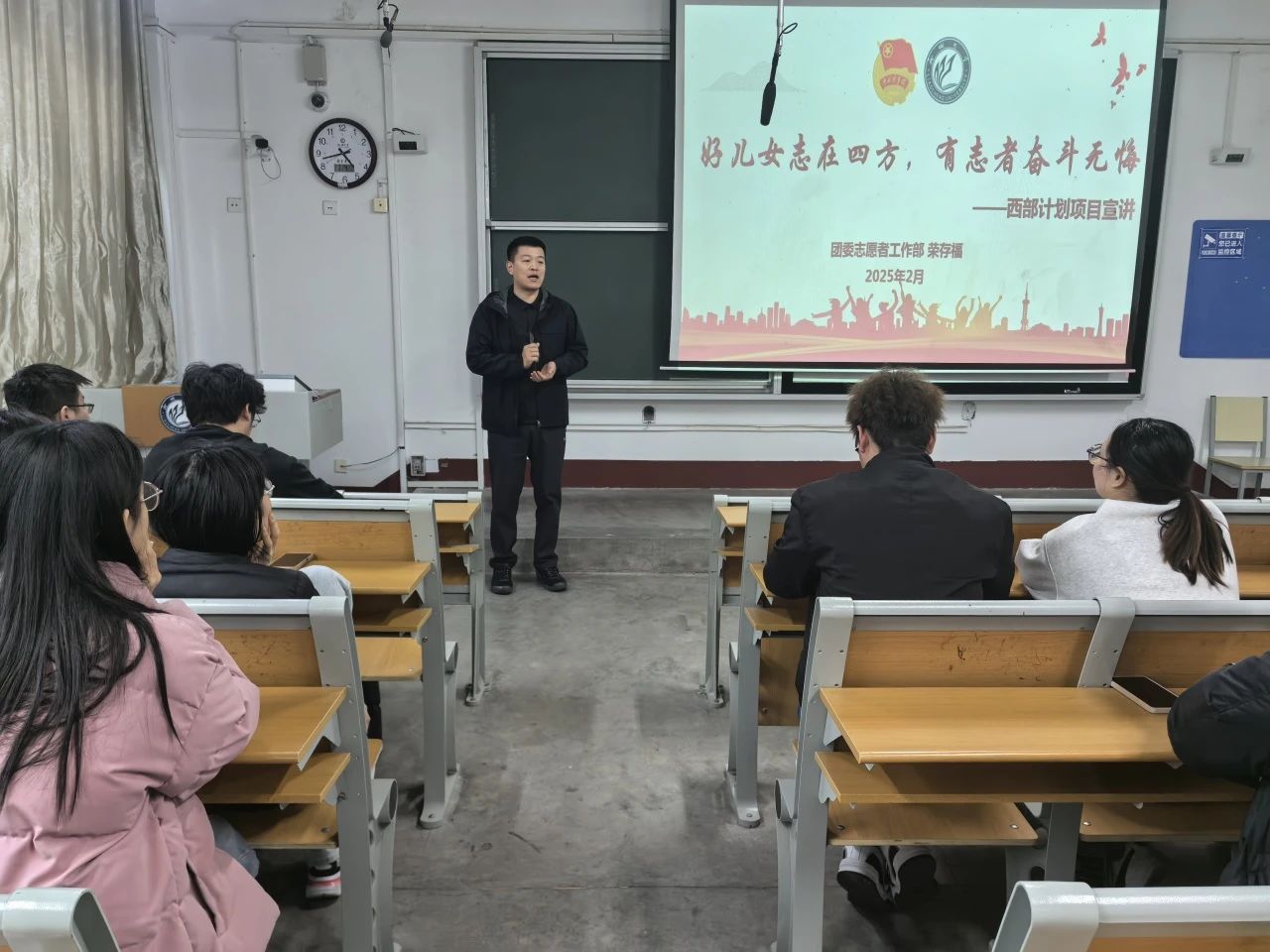 为让学生进一步了解大学生志愿服务西部计划,引导学生用实际行动践行“到西部去,到基层去,到祖国最需要的地方去”的号召,3月11日,无码影片 于无码影片 东校区2#101举办西部计划政策宣讲会,本次宣讲会特邀校团委志愿者工作部部长荣存福担任主讲人。