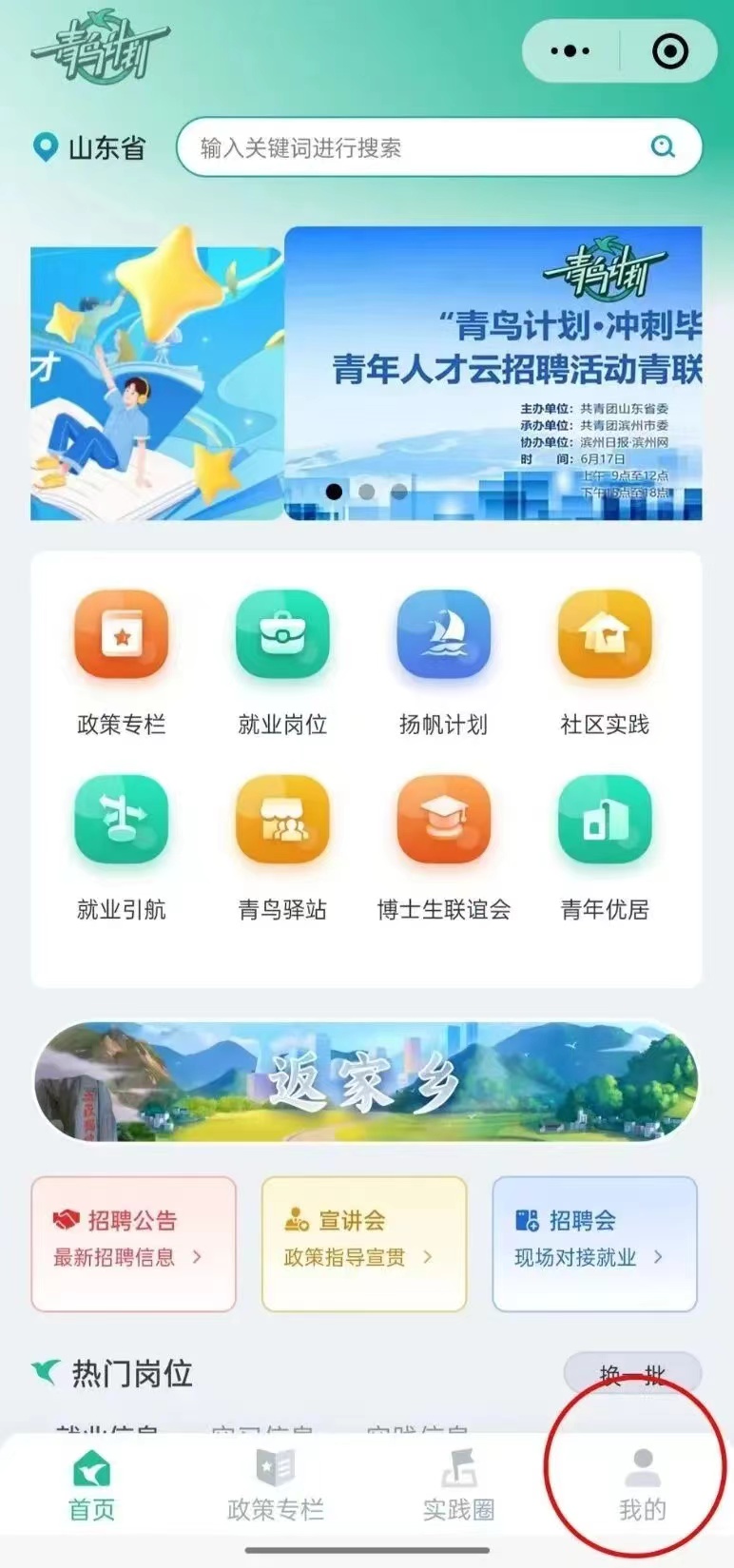 1、微信搜索“青鸟计划”小程序,进入主页面